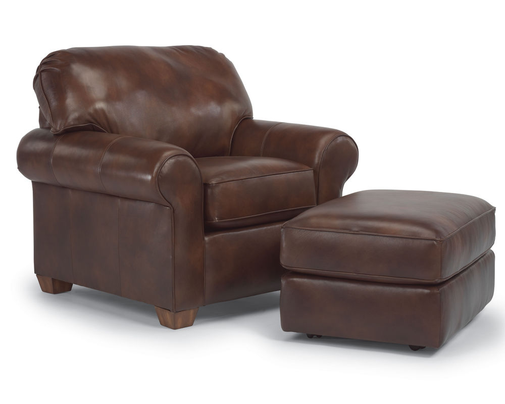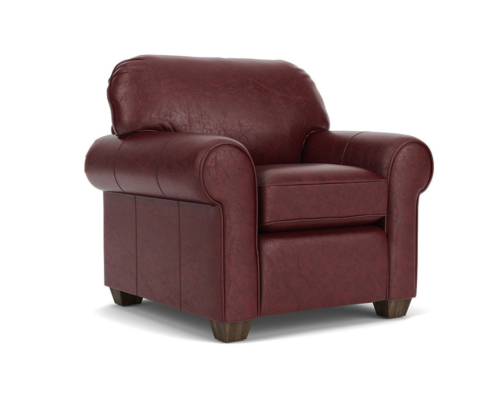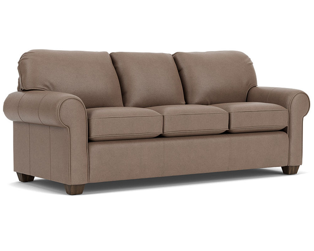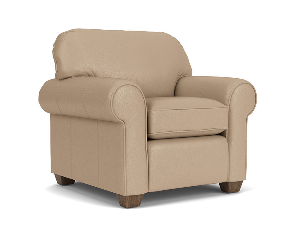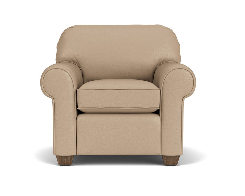 Smooth edges, rolled arms, and exposed block legs give Thornton classic appeal as a living-area staple. Welt cording trims the back and seat cushions for a finishing touch. With materials and construction backed by lifetime guarantees, this style will feel comfortable today and for years to come. Flexsteel only uses the finest leathers guaranteed to last. Over 40 leather colors to select from.
