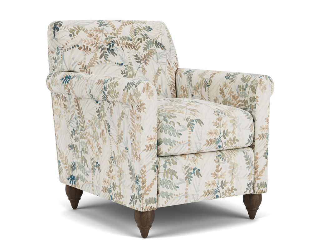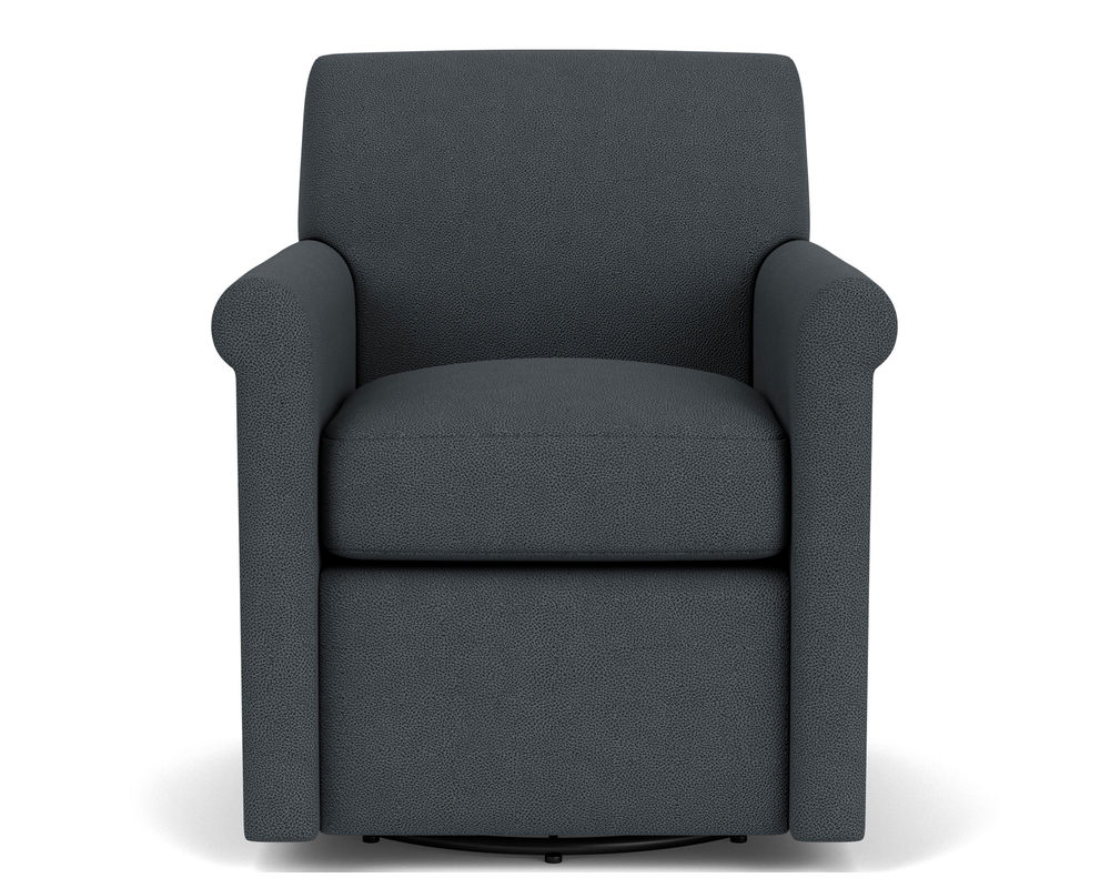 The Flexsteel Stella 5891 Swivel Chair is a perfect combination of whimsical elegance and modern flair. With its petite roll arms and removable and reversible cushions, this chair will add a touch of beauty to any room. The durable frame is handcrafted with careful detail and upholstered with the highest quality materials. It is supported by the patented Blue Steel Spring system, which is backed by a lifetime guarantee. And with two accent pillows in your choice of fabric, the Stella 5891 Swivel Chair will make a stunning addition to any home.