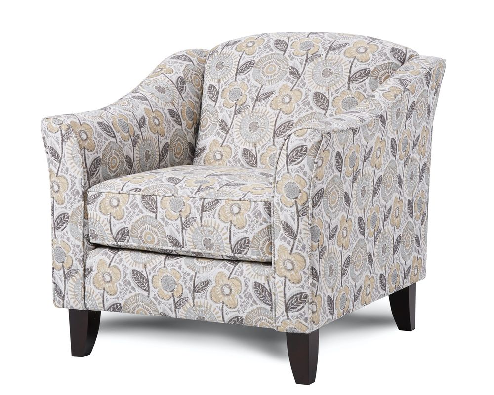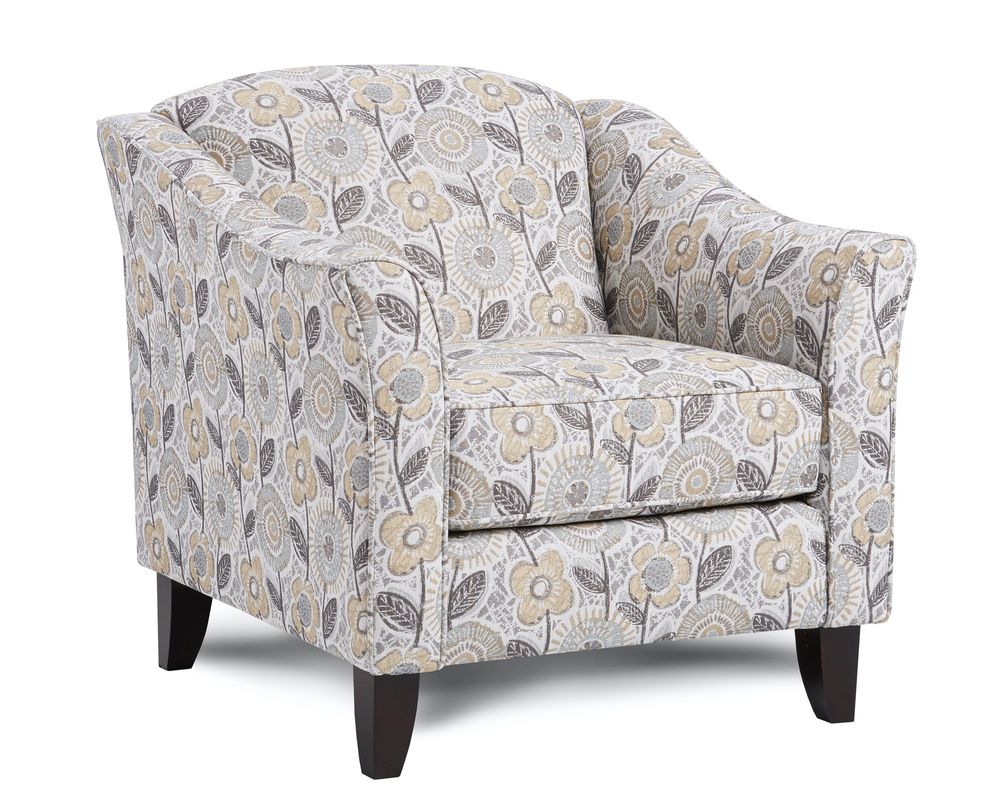 Introducing the Dayflower Haze Accent Chair—452, the perfect addition to your home decor. This elegant accent chair features flared coffee-finish legs that add a touch of sophistication to any room. The tight back design, along with flared arms, creates a sleek and modern look, making it a versatile piece that can blend in seamlessly with any style of furniture.