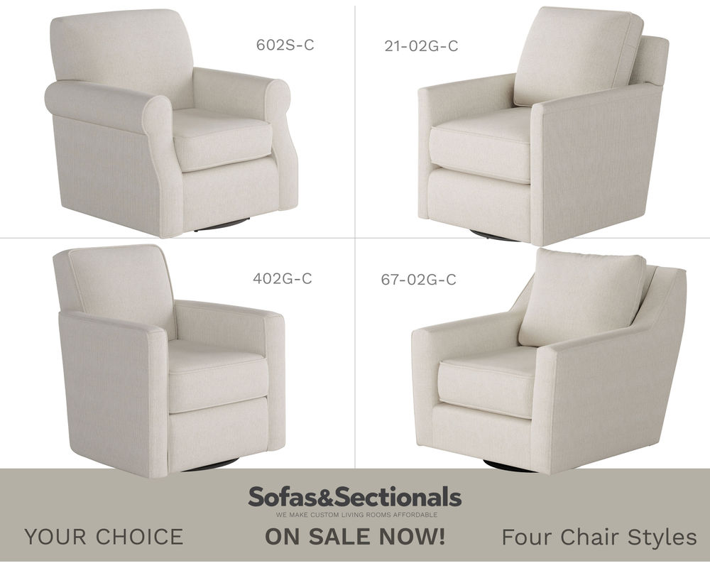 But that's not all—these swivel gliders offer a 360-degree turn and an easy rocking motion, giving you a more comprehensive range of motion and making them the perfect spot for relaxation. Whether you want to read a book, watch TV, or unwind after a long day, these swivel gliders provide the ultimate comfort and convenience. Note - the 602S-C is a swivel chair only.