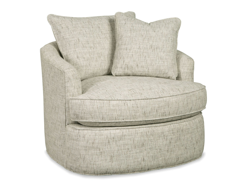 The Swirl 085710 Swivel Chair is the perfect addition to any living space. This stylish chair features modern lines and barrel shaping that give it a great look and casual appeal. It also offers superior comfort with a Blend Down Cloud cushion and loose back pillow, as well as a single toss pillow for extra comfort. In addition, the swivel chair is welted and is available in over 100 High Performance fabrics, allowing you to customize it to your exact taste and style. Make a statement in your home with the Swirl 085710 Swivel Chair.