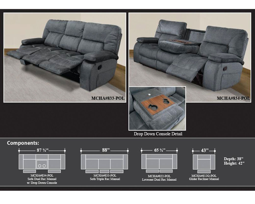Chapman Triple Reclining Sofa in Polo Fabric