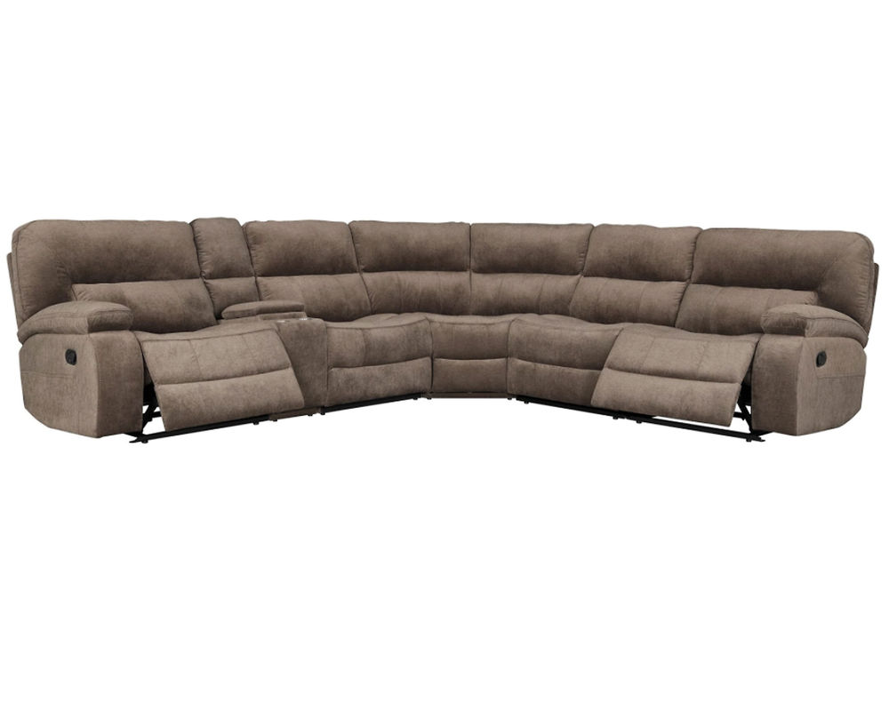 But that's not the only feature that makes the Chapman Reclining Sectional a must-have for your home. The entertainment console in the middle of the sectional offers additional convenience and functionality, keeping your living space organized and clutter-free. It includes storage space for your remotes, books, and other items, helping you keep your living space organized and clutter-free. The console also features cupholders, so you can enjoy your favorite beverage while watching TV or reading a book.