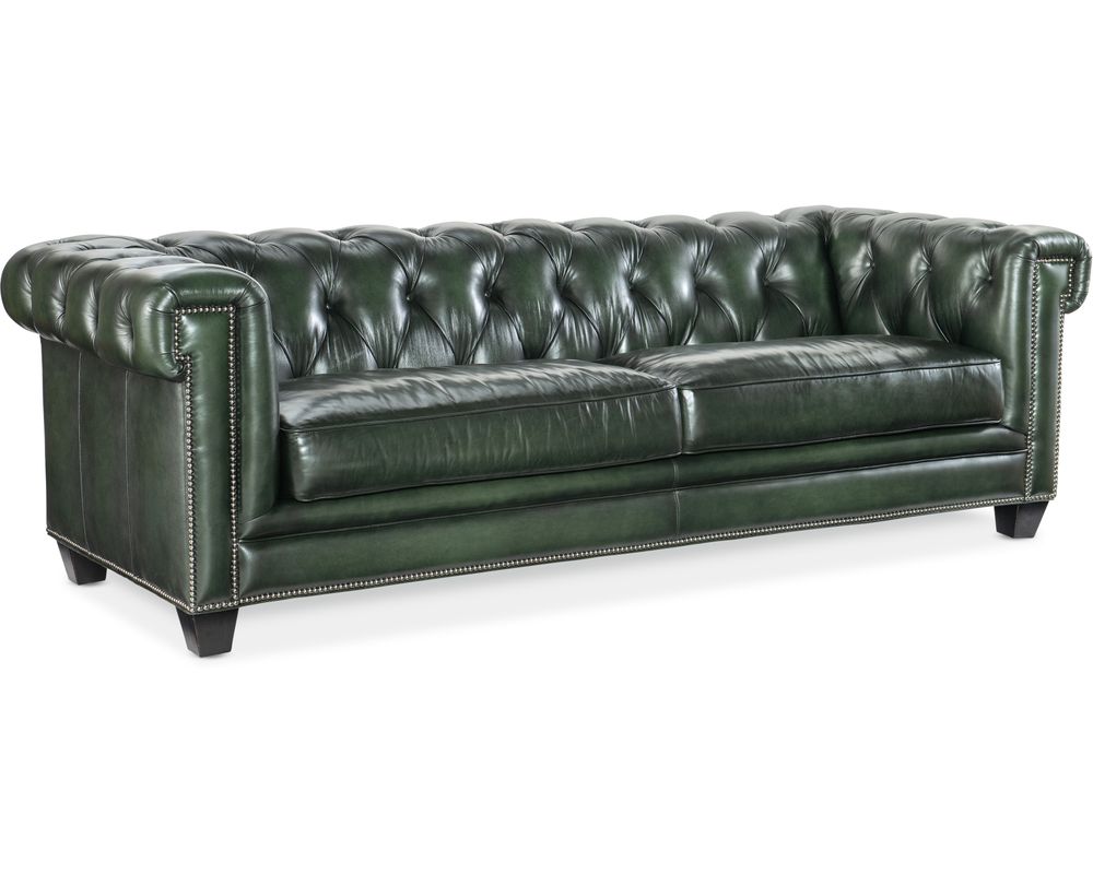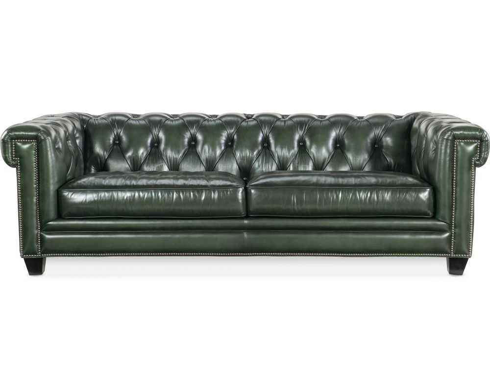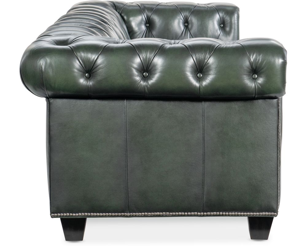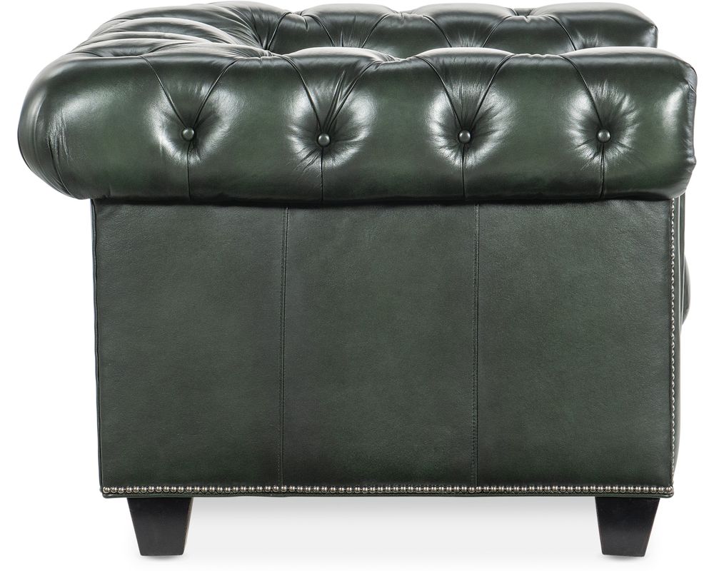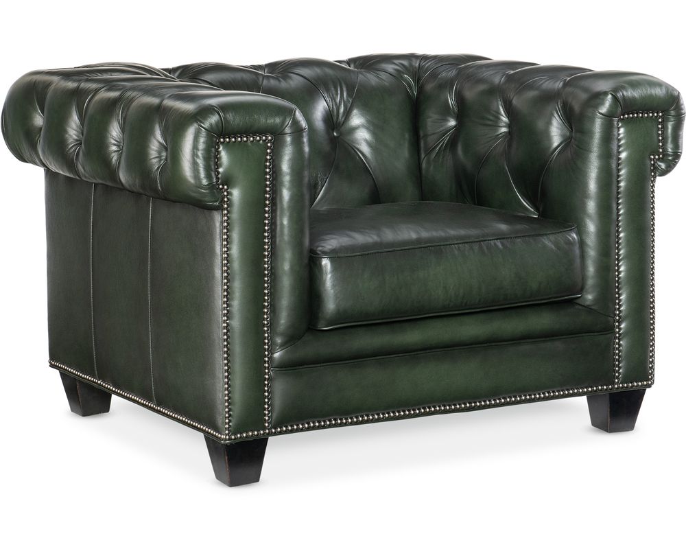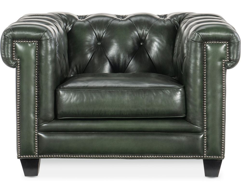 From Sofas and Sectionals.com: Introducing the elegant and sophisticated Charleston Tufted Chair, the perfect addition to any traditional home decor. This exquisite chair features a classic Chesterfield style with its button-tufted back and arms, exuding a timeless charm. The chair is expertly crafted with high-quality leather material. Precisely, Sarzana Portal leather is finished, wiped off, and made from top grain with splits for added durability.