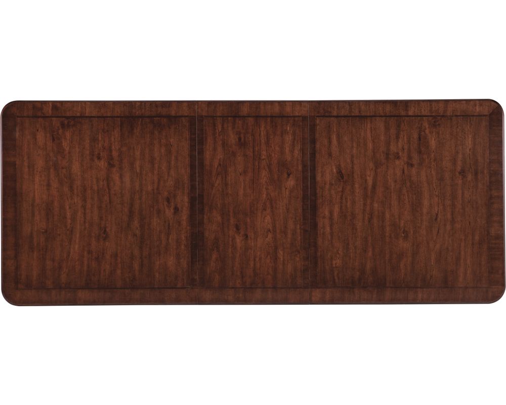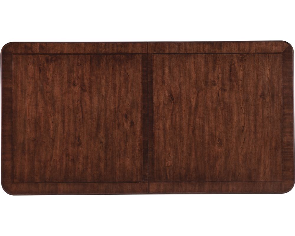 Made with cherry veneers, walnut inlay, and a solid-wood edge top, this dining table exudes durability and strength. The dark wood finish adds a touch of elegance and complements any traditional décor perfectly. For a more vibrant and bold look, the table is also available in a Maraschino Cherry finish, showcasing the natural grain of cherry veneers and creating a warm and inviting atmosphere.