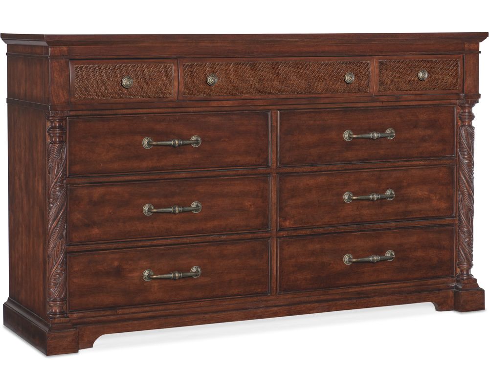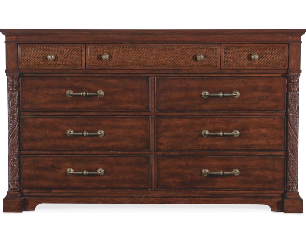Upgrade your bedroom with the Charleston Nine-Drawer Dresser and experience the perfect blend of style and functionality.