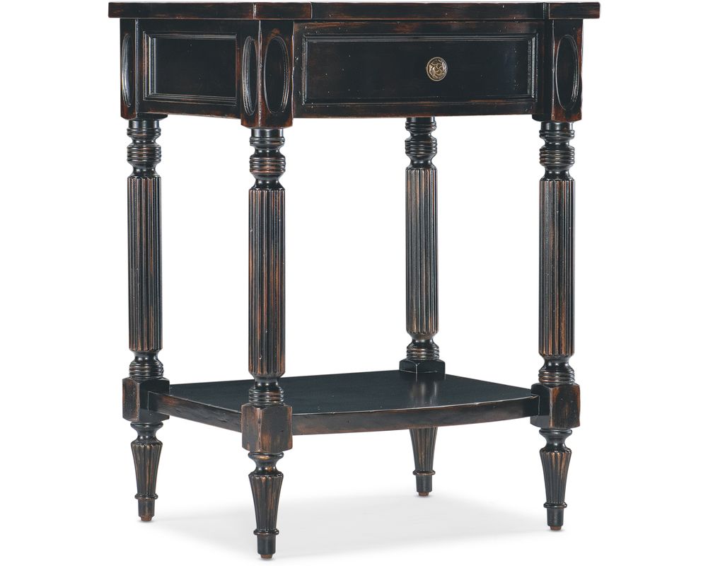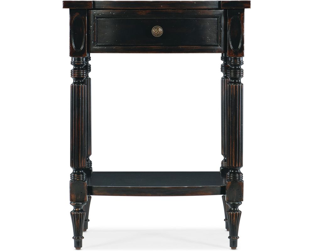 The table's design includes one self-closing drawer and one fixed shelf, providing ample storage space for your telephone, notepads, and other essentials. The drawer is equipped with a custom round knob in an antique bronze finish, adding a touch of sophistication to the overall look.