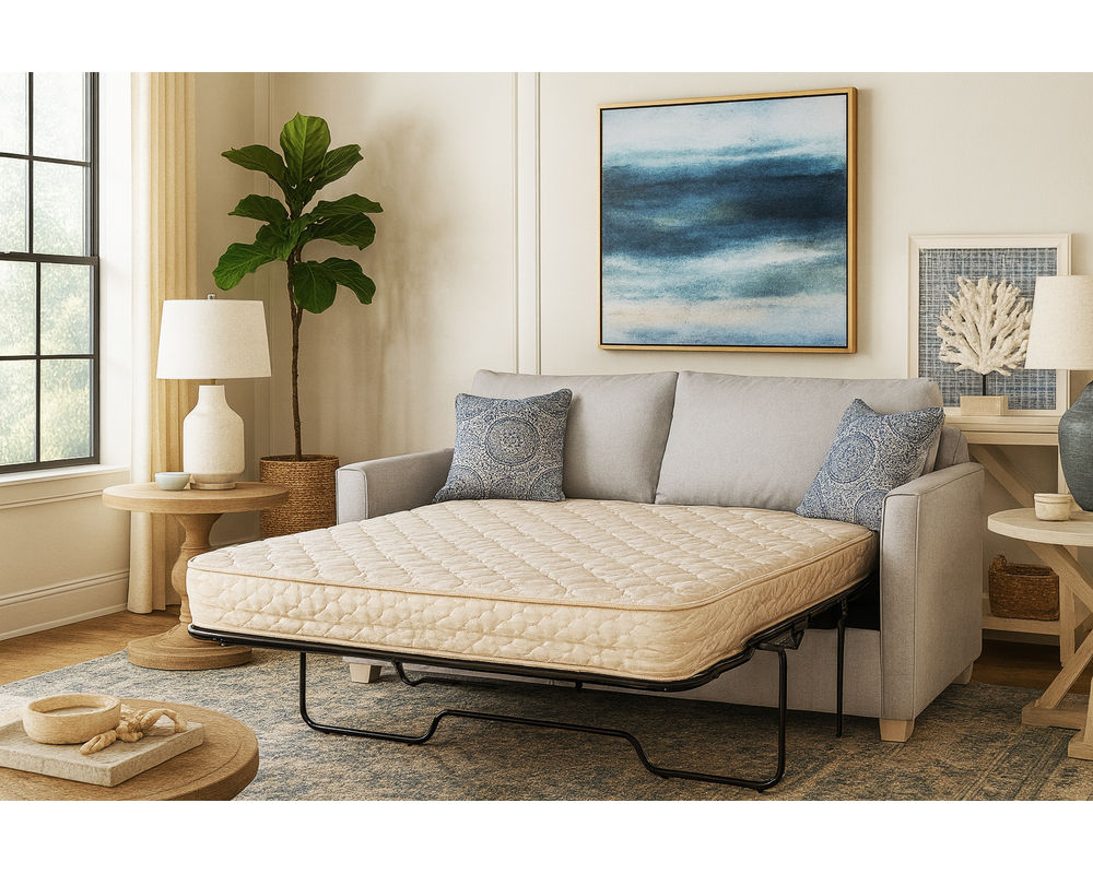 At the heart of the AirDream® Sleeper Mattress is our exclusive Air-Over-Coil Technology, an innovative design that blends the best of two worlds: the reliable support of a traditional innerspring base and the cloud-like comfort of an adjustable air layer. The individually wrapped coils provide stable, resilient support to keep your body properly aligned, while the air cushion on top allows you to fine-tune firmness for personalized comfort. This dual-layer design not only mimics the feel of a high-end luxury mattress, but it also eliminates the rigid cross-bar sensation that makes most sleeper sofas uncomfortable—transforming your pull-out into a true guest-ready bed. Setup is effortless—inflate or deflate in under a minute with the included electric pump.