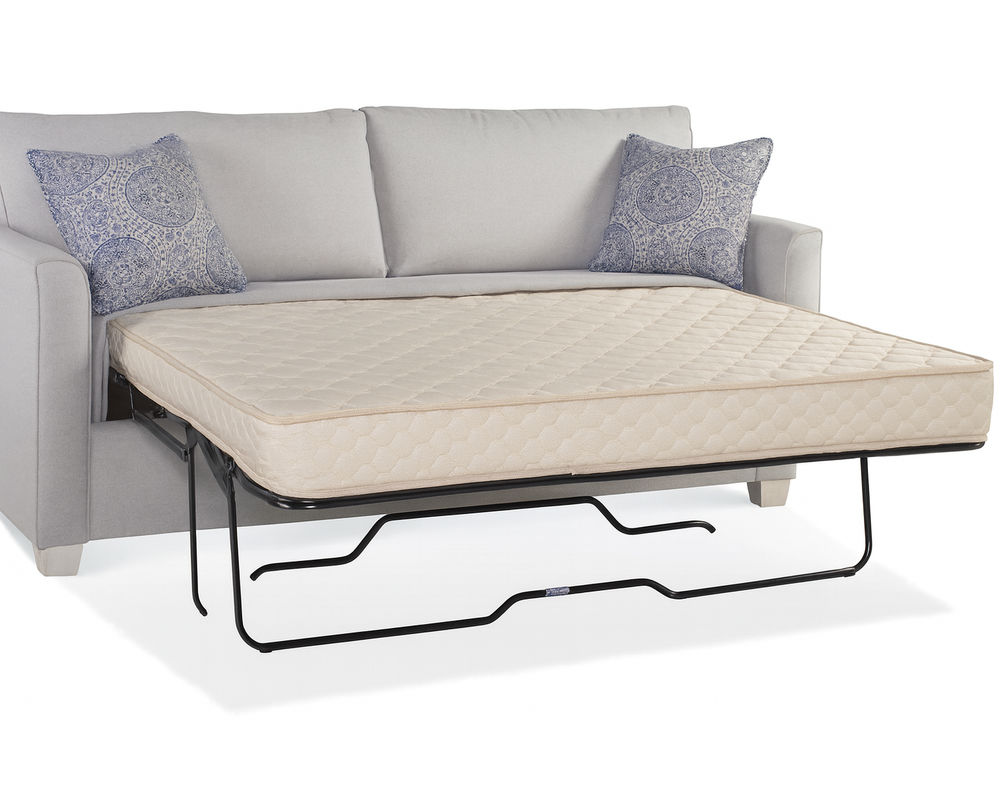 The Charleston 77" Queen Sleeper is designed with compact spaces in mind, making it a perfect fit for condos, apartments, and guest rooms. With its clean transitional silhouette and tailored track arms, it blends effortlessly into a variety of interiors. By day, it offers supportive seating with Comfort Plus high-resilience foam cushions and soft fiber-filled backs. By night, it easily transforms into a queen-size sleeper with a premium steel mechanism and your choice of three mattress options—innerspring, memory foam, or the luxurious Air Dream mattress. Customizable in a wide range of fabrics and wood finishes, the Charleston Queen Sleeper is a stylish and practical solution for everyday living.