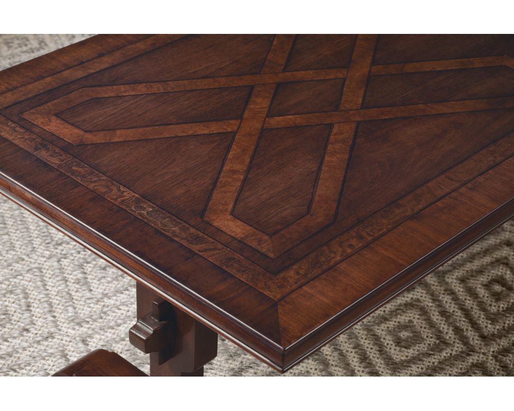 The interlocking stretcher is another unique feature of this table. It adds structural integrity and a touch of modernity to its traditional style, making it a versatile piece that can seamlessly blend in with a variety of decor styles.