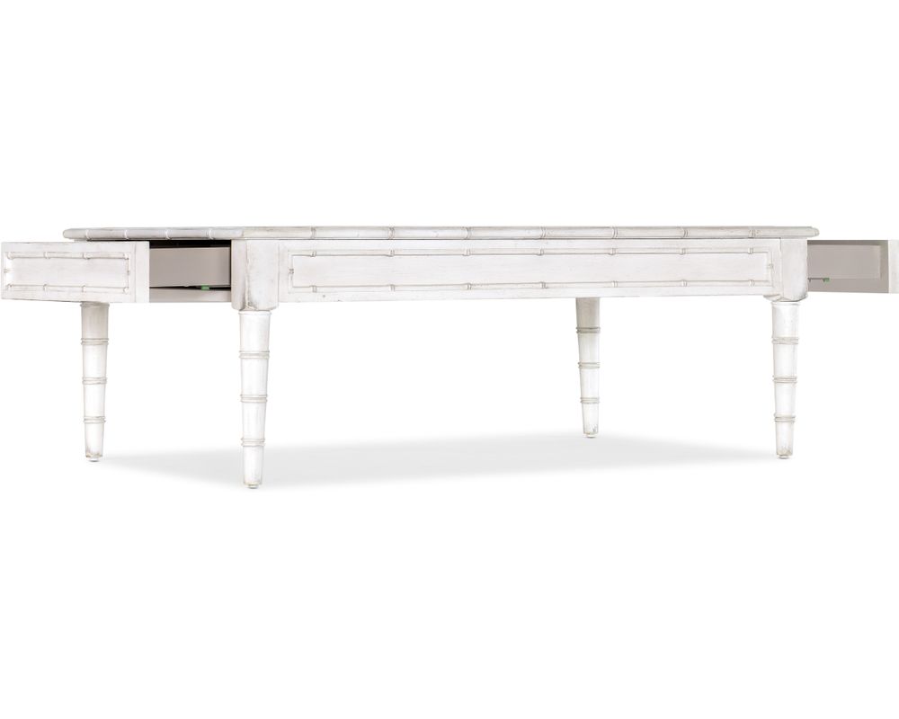 The Charleston Rectangle Cocktail Table is beautifully crafted with maple veneers and resin, giving it a stunning and luxurious look. The bamboo-designed accents add an exotic touch to the overall design, making it a unique and eye-catching piece in any room.