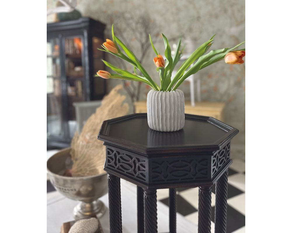 The Charleston Side Table stands out with its unique eight-twist legs, adding a touch of charm and character to the piece. The one fixed shelf provides ample storage space for your favorite books, decorative items, or other essentials. The table also features decorative fretwork trim, adding an extra element of visual interest.