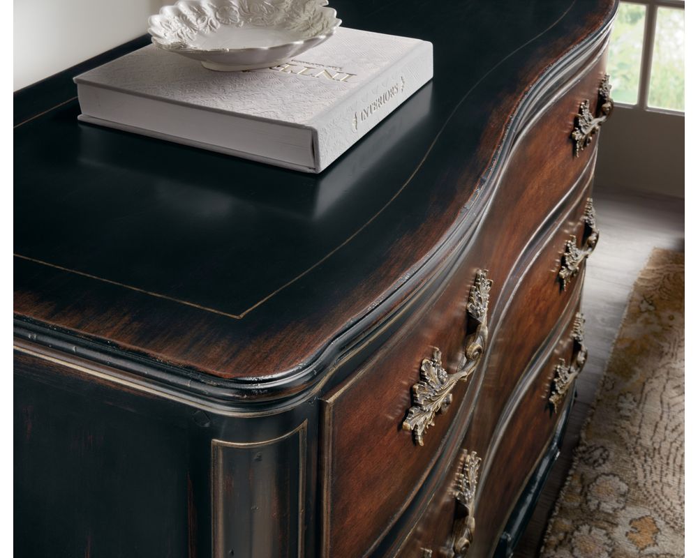 From Sofas and Sectionals.com: Introducing the elegant and functional Charleston Three-Drawer Accent Chest, perfect for adding a touch of sophistication to any room. This accent chest features a serpentine-shaped front, adding a unique and eye-catching detail to its design.