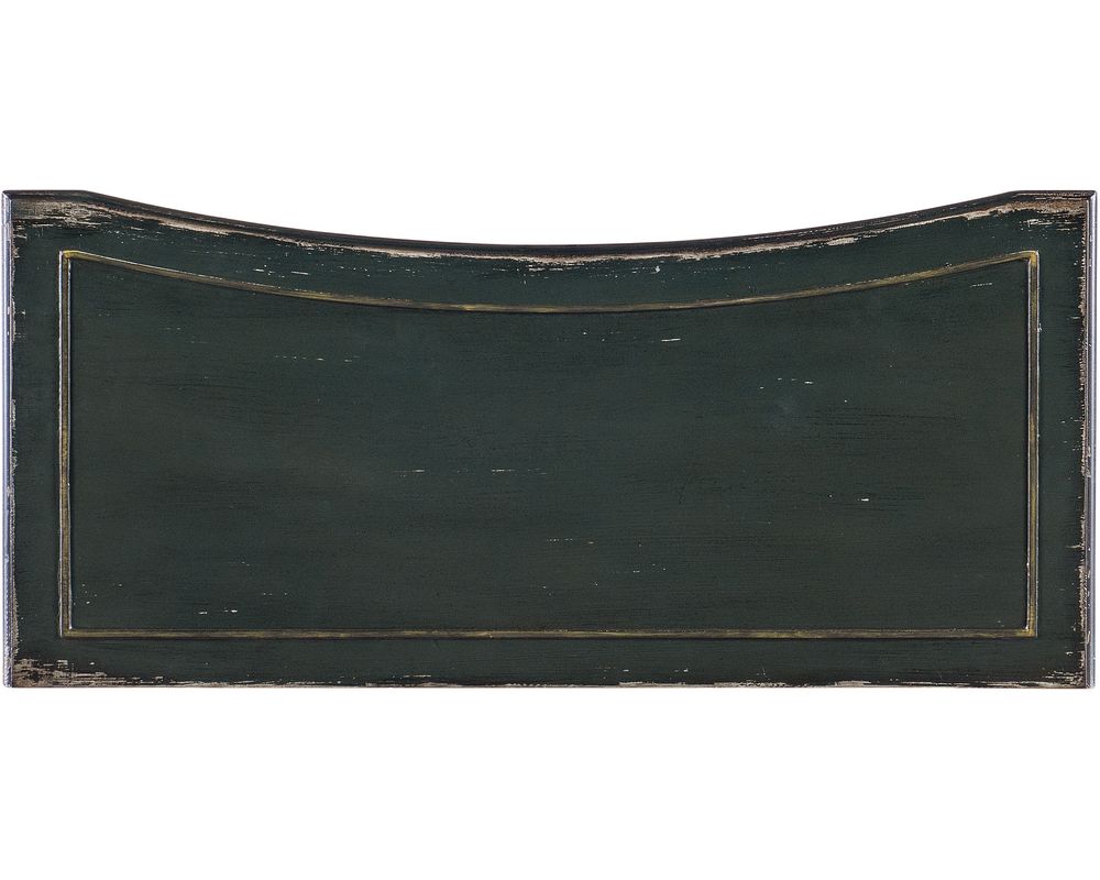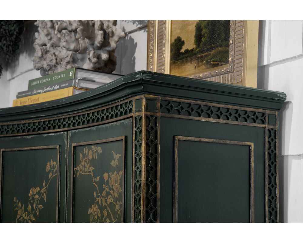 The chest's concave shape adds depth and dimension to any space, making it a perfect fit for traditional-style homes. The beautiful green finish, known as Charleston Green, is a weathered interpretation of the classic dark green that is synonymous with the historic district of Charleston. The handpainted detailing and highlights add a touch of regional inspiration to the piece, making it a true work of art.