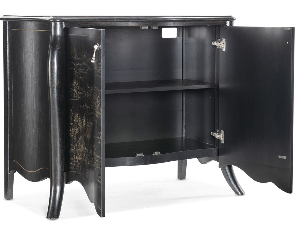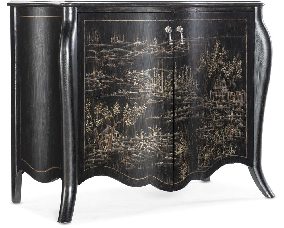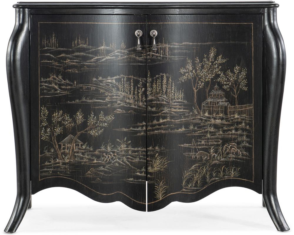 Crafted from high-quality maple veneers, this chest is durable and adds a touch of elegance to any room. The black finish adds a classic and timeless charm, making it suitable for any interior décor. The hand-painted chinoiserie design on the black water finish is inspired by the rich cultural heritage of the South Eastern region, adding a unique and artistic touch to the piece.