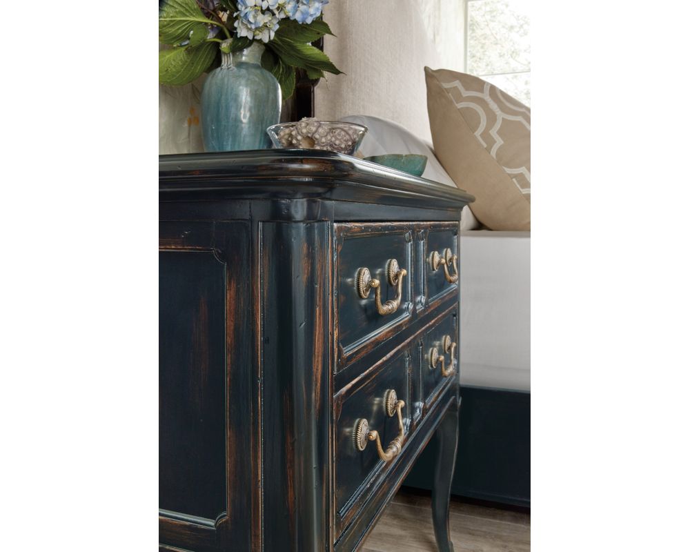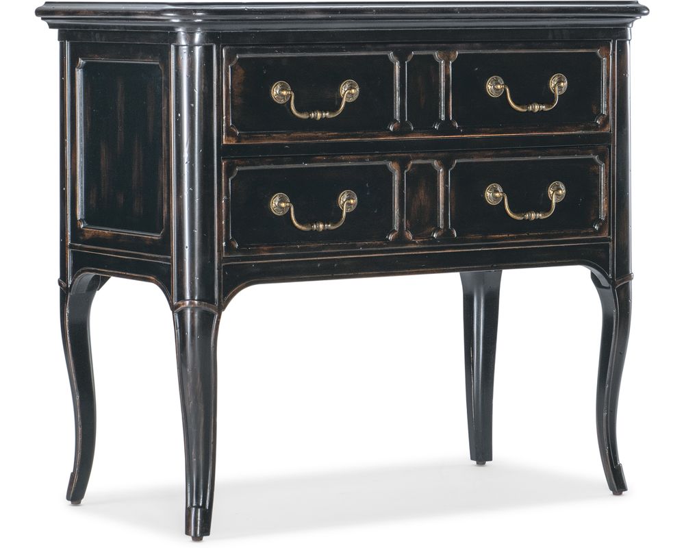 Part of the Charleston collection, this nightstand is designed with a traditional style that exudes charm and sophistication. The black cherry finish adds a touch of warmth and showcases subtle distressing, giving it an heirloom look. The antique bronze bail pull hardware adds a classic touch to the overall design.