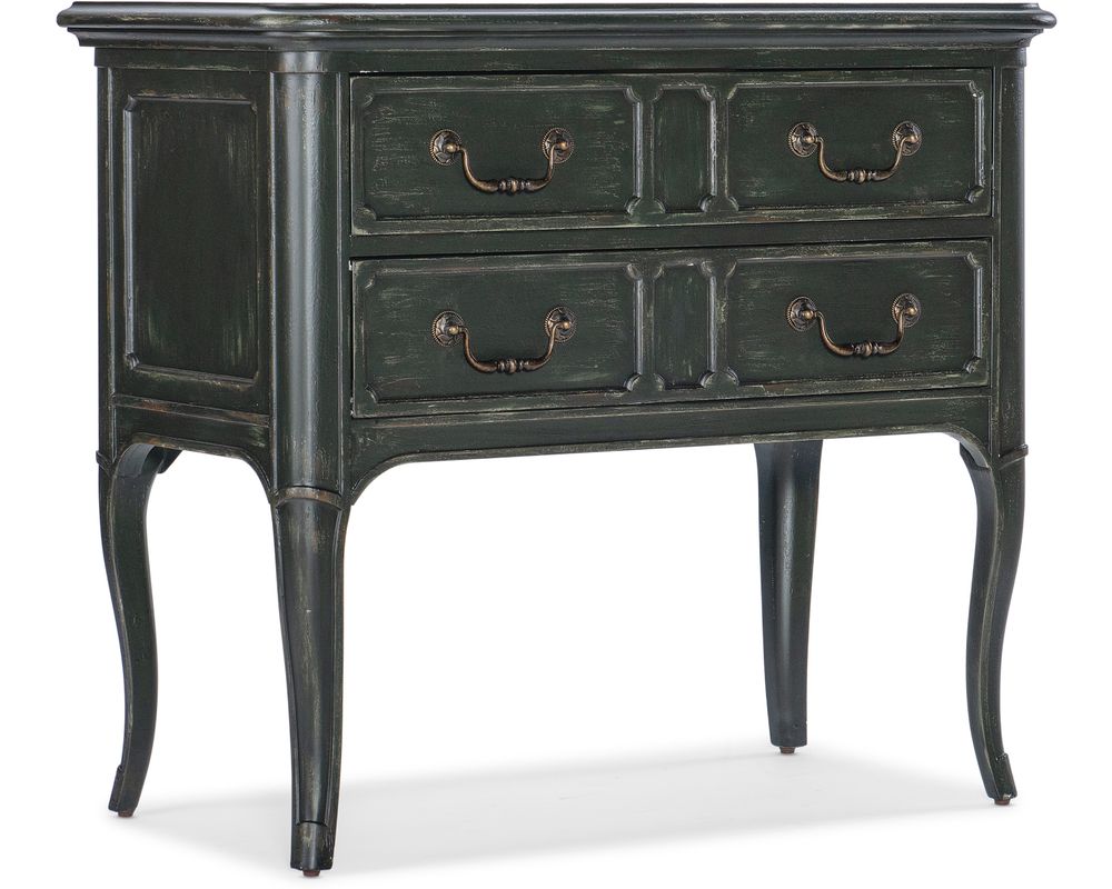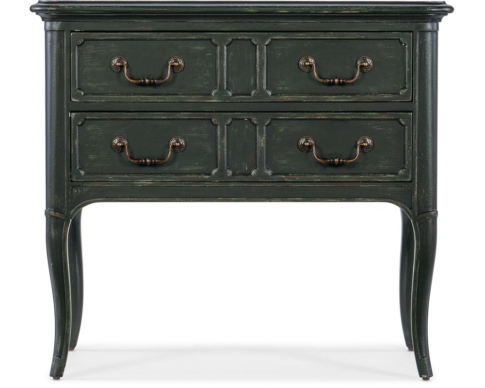 From Sofas and Sectionals.com: Introducing the Charleston Two-Drawer Nightstand, a stylish and functional addition to your bedroom. Crafted from high-quality maple veneers with resin and a solid-wood edge top, this nightstand is built to last. Inspired by the historic district of Charleston, the beautiful green finish adds a touch of elegance to any room.