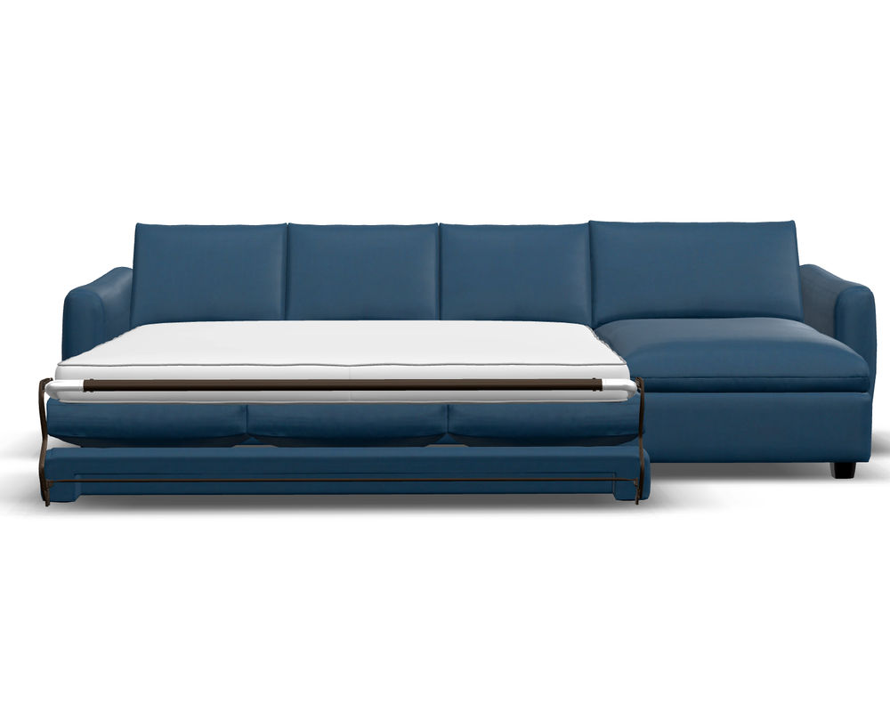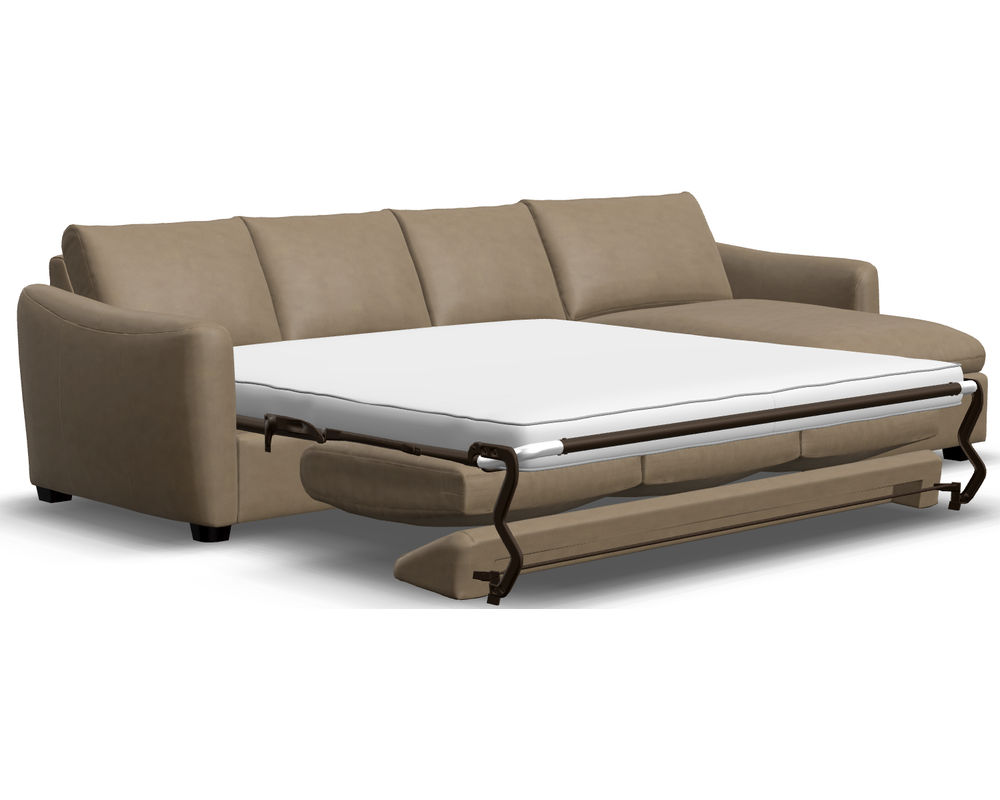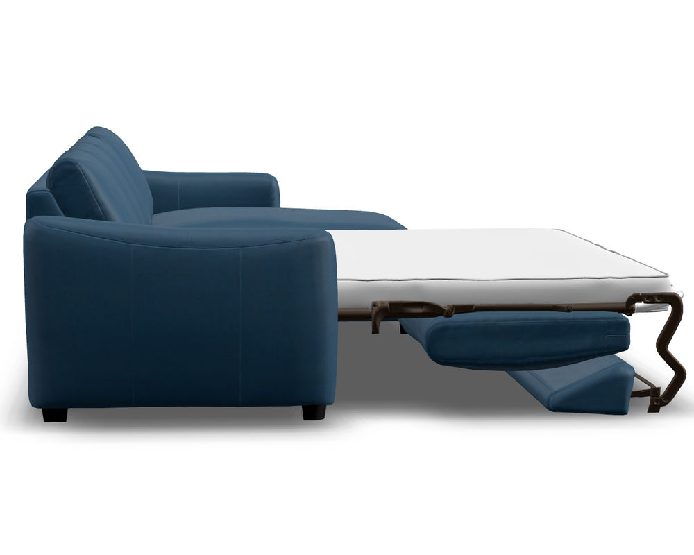 Experience effortless comfort with Palliser’s Italian-engineered sleeper system—crafted from precision-formed, high-strength steel for lasting durability and smooth, silent operation. Designed to open and close in under five seconds, this advanced mechanism seamlessly transitions from sofa to bed without removing any cushions. The back and seat cushions fold neatly beneath the frame, leaving no clutter or mess, while an integrated storage compartment keeps pillows conveniently stowed inside the sofa. Refined, reliable, and beautifully functional, this is Italian craftsmanship at its best—where innovative design meets everyday luxury.