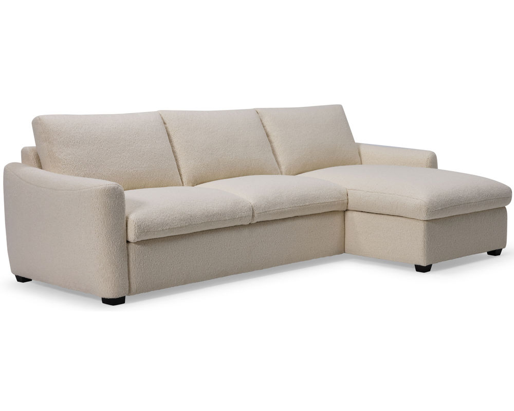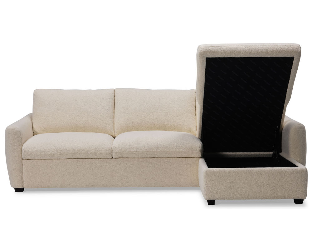 The Charli sleeper sectional boasts a premium seating story, featuring a bullnose-style seat design and blunt knife-edge-style back cushions. This not only adds a touch of elegance to the sectional but also ensures maximum comfort for you and your family. Whether watching TV, reading a book, or simply relaxing, the Charli sectional will provide the perfect spot to unwind. The chaise lounge includes storage for blanket and pillows.