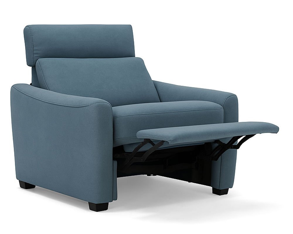 ✅ Power recline function with a discreet touch-control button positioned between the arm and seat