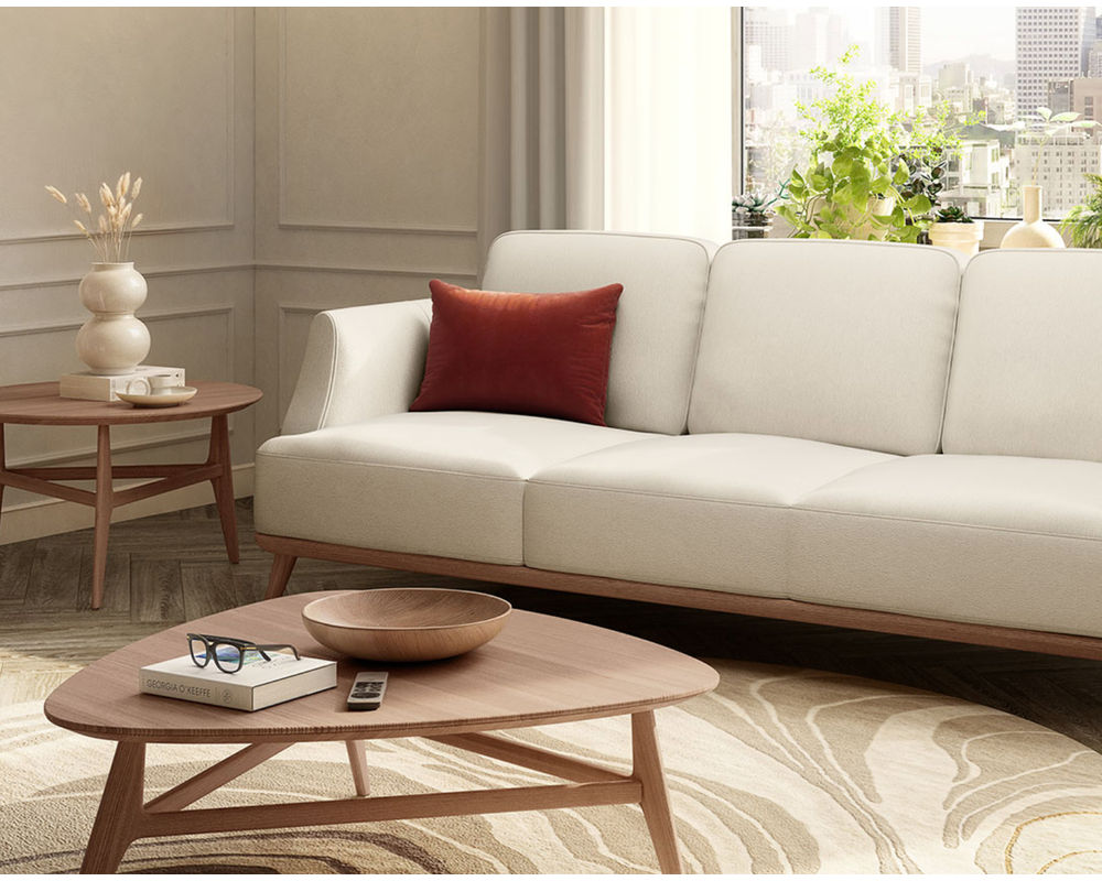 The open-base design of this sofa adds a touch of elegance and sophistication to any room. It also allows for easy cleaning, making maintenance a breeze and relieving you from the stress of upkeep. The open base not only adds to the sofa's overall aesthetic appeal but also gives it a sense of lightness and airiness.
