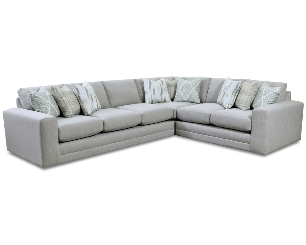 The Charlotte Cremini Sectional features a right-arm facing sofa, a 90 degree corner wedge and a left-arm facing loveseat. With its wide track "party" arms, loose reversible seat and back cushions and transitional design Charlotte Cremini is a modern design in a transitional pattern of covers. It comes with 3 pairs of contrasting pillows and a elongated kidney pillow. The Charlotte Cremini Sectional is part of our Luxe Living Collection which features fully framed and upholstered outside arms and outside backs, a 1.8 density foam core seat cushion wrapped with HR high resiliency cool gel top and bottom with plush dacron fiber. Luxe Living also features 11 inch thick seat cushions that are zippered, loose and reversible. All back cushions are also loose, zippered and reversible filled with bagged and channeled fiber for softness and comfort. We also complete thorough testing of the seat cores to ensure comfort, consistency and durability.