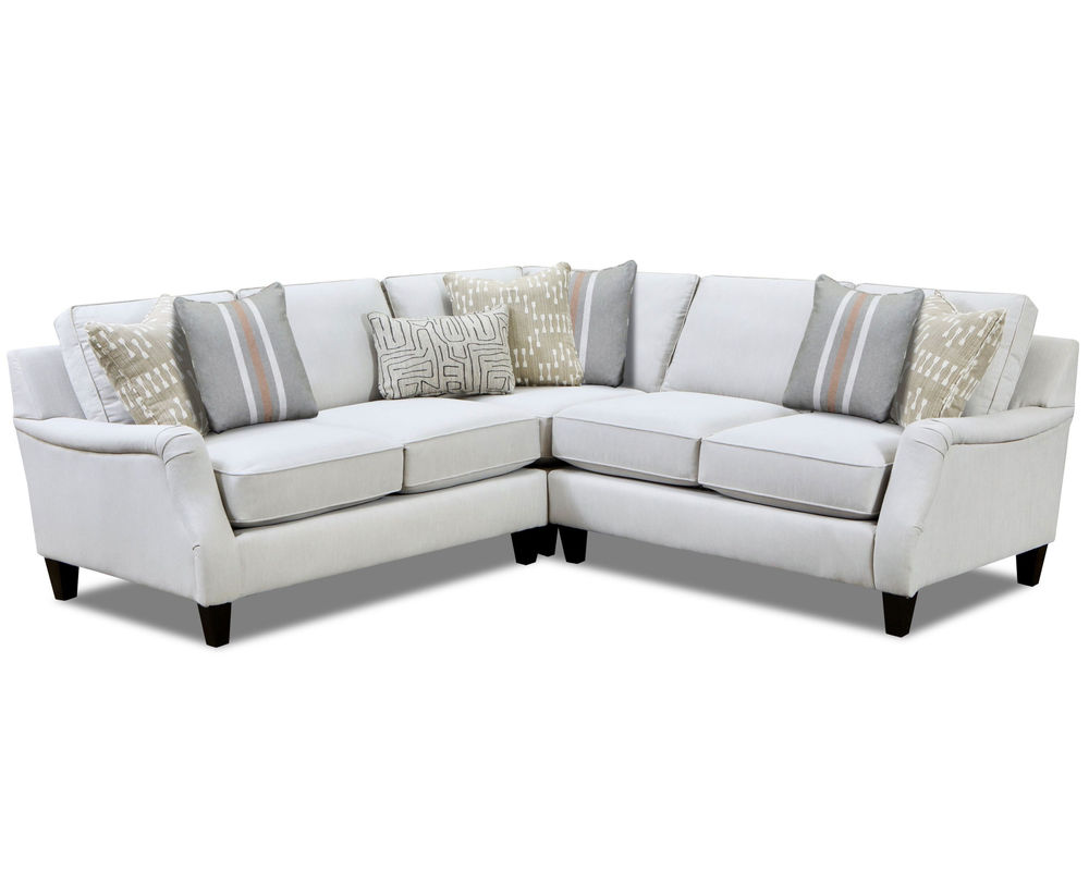 The Charlotte Parchment Sectional features two one-arm loveseats and a 90 degree corner wedge. With its English pleated arms, box border seat and back cushions and transitional design Charlotte Parchment is a mordern design in a global pattern of covers. It comes with 3 pairs of contrasting pillows and a elongated kidney pillow. The Missionary Salt Sectional is part of our Luxe Living Collection which features fully framed and upholstered outside arms and outside backs, a 1.8 density foam core seat cushion wrapped with HR high resiliency cool gel top and bottom with plush dacron fiber. Luxe Living also features 11 inch thick seat cushions that are zippered, loose and reversible. All back cushions are also loose, zippered and reversible filled with bagged and channeled fiber for softness and comfort. We also complete thorough testing of the seat cores to ensure comfort, consistency and durability.