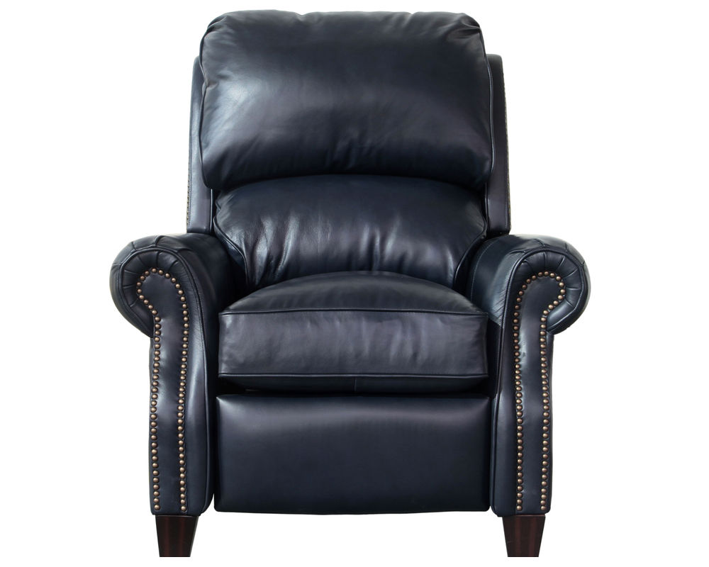 Introducing the Churchill Leather Recliner, a unique blend of classic elegance and luxurious comfort. This 3-way low-leg recliner stands out with its classic pub-back design, knee-back rolled arms accented with nail-head trim, and hand-carved wood legs finished in an Espresso color. The adjustable zippered upper and lower back pillows add a touch of personalization to your comfort.