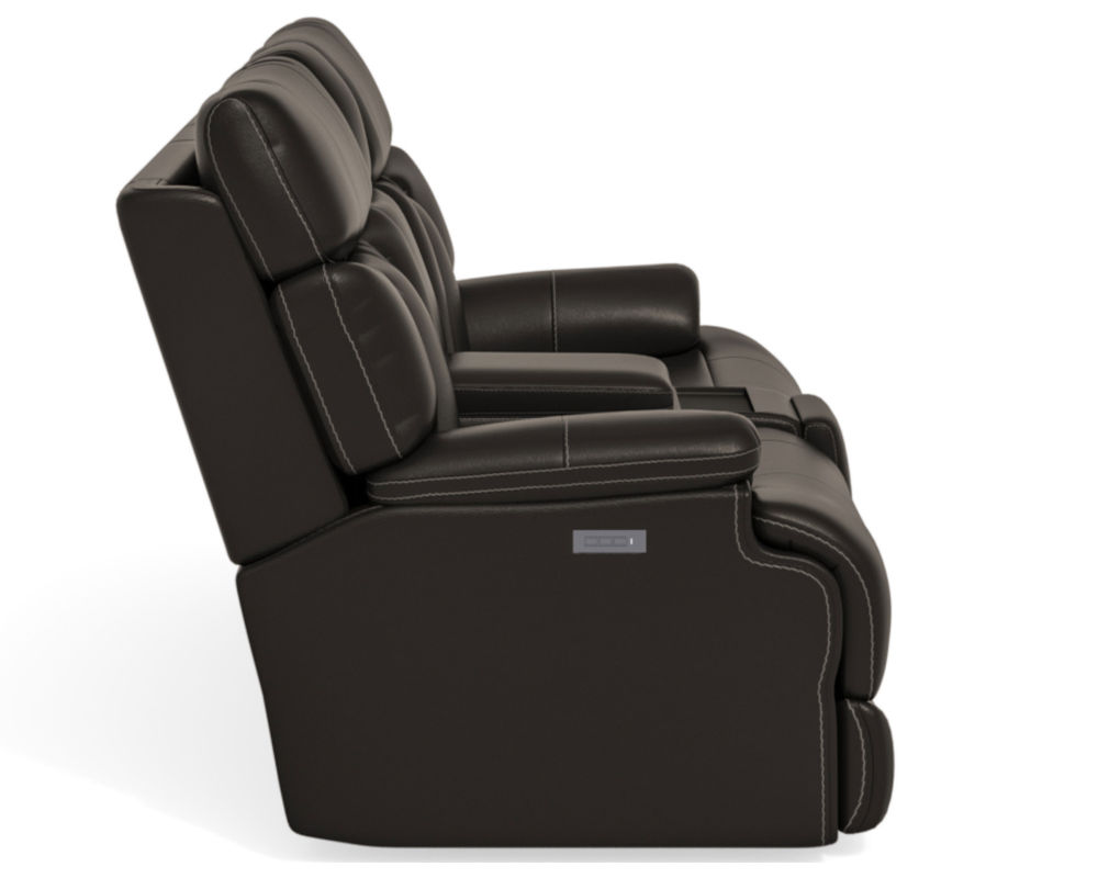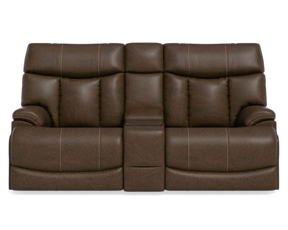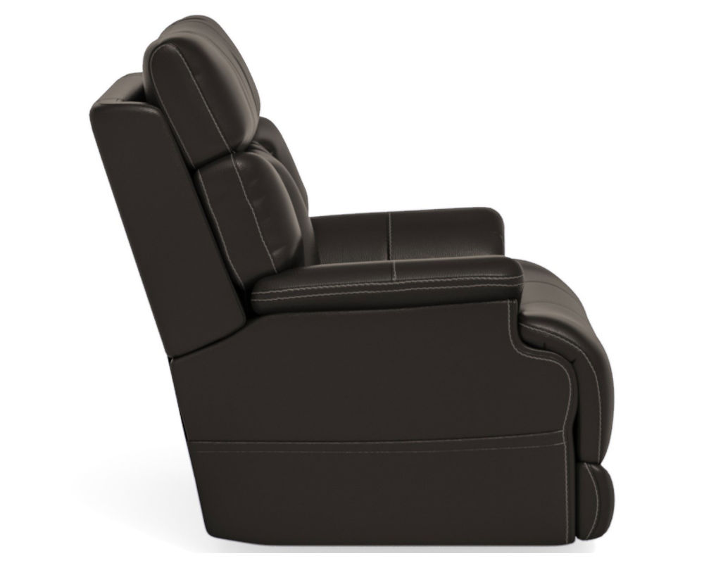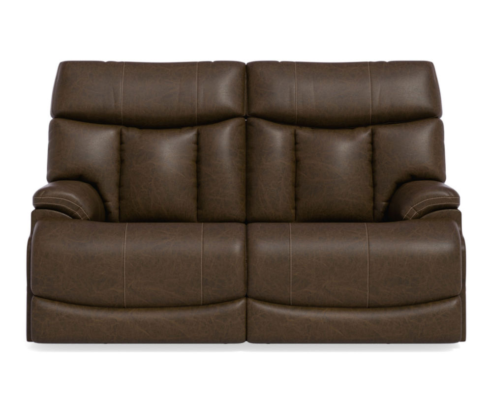 Sink into the comfort of a power recliner built for two with the Clive Power Loveseat with Power Headrests and Lumbar. This high-comfort, high-quality loveseat has a distinctive look with pillow pad armrests and flat seat cushions, along with elegant heavy thread stitching and a channeled back cushion. Built-in power controls on either side of the loveseat independently adjust the headrests, footrests, and lumbar support to dial in both users' ideal level of comfort. Easily shift from sitting to reclining to sleeping with a lay-flat mechanism, and keep your feet and legs elevated with a fully extended footrest that helps improve circulation. With Clive, you get quality that lasts thanks to our DualFlex Spring System that ensures a wide range of motion. Attached seat and back cushions made from high-density foam provide a supportive sit. And with a USB port built into the power control, you can keep devices charged and close at hand.