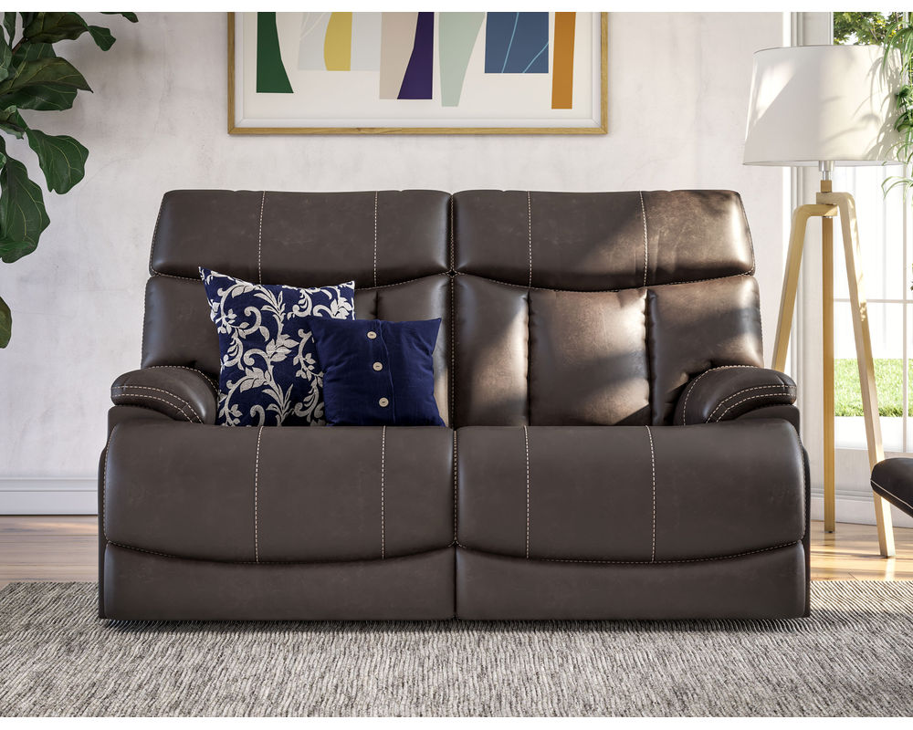 Sink into the comfort of a power recliner built for two with the Clive Power Loveseat with Power Headrests and Lumbar. This high-comfort, high-quality loveseat has a distinctive look with pillow pad armrests and flat seat cushions, along with elegant heavy thread stitching and a channeled back cushion. Built-in power controls on either side of the loveseat independently adjust the headrests, footrests, and lumbar support to dial in both users' ideal level of comfort. Easily shift from sitting to reclining to sleeping with a lay-flat mechanism, and keep your feet and legs elevated with a fully extended footrest that helps improve circulation. With Clive, you get quality that lasts thanks to our DualFlex Spring System that ensures a wide range of motion. Attached seat and back cushions made from high-density foam provide a supportive sit. And with a USB port built into the power control, you can keep devices charged and close at hand.