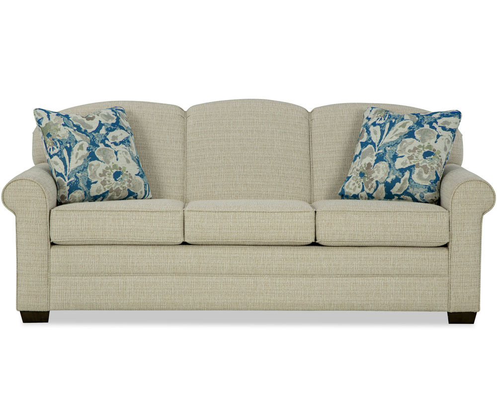 Introducing the Cloverly 7387 Queen Sleeper, the perfect addition to your living room furniture collection. This sleeper sofa boasts classic styling and a beautifully shaped back rail that will catch your guests' eye. Our customers have fallen in love with its timeless design, making it a familiar favorite.