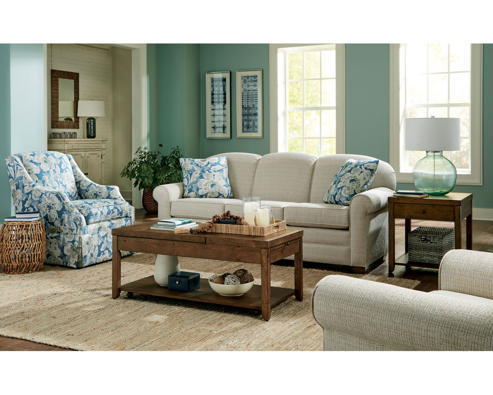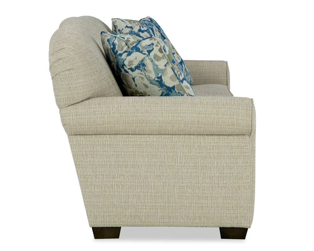 The Cloverly 7387 Queen Sleeper is aesthetically pleasing and highly practical. It features a tight back for easy maintenance, ensuring it looks polished and neat. The softly rolled sock arms provide a comfortable spot to rest your arms, while the low block feet add a touch of modern elegance.