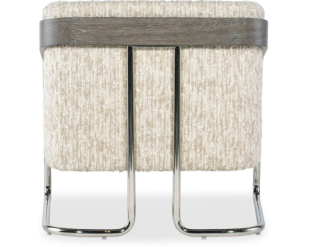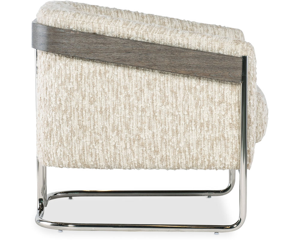 Elevate your space with the Cody Accent Chair from Hooker Upholstery—a perfect fusion of modern sophistication and plush comfort. Wrapped in the inviting Fluffy Natural fabric and framed with sleek chrome-finished metal, this chair makes a bold statement while offering cozy, supportive seating. With its transitional barrel-back design and refined topstitch trim, Cody delivers a designer look that’s as comfortable as it is stylish.