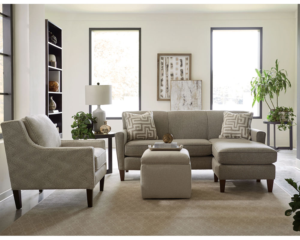 The Collegedale 6200 Sofa Chase is the perfect addition to any living area. This chic silhouette is small enough to fit almost any family room, yet spacious enough to accommodate your guests. The sofa chaise features a floating ottoman which can be placed on either the left or right side for added convenience. The Collegedale collection offers a retro feel that will certainly bring a touch of sophistication to your home. The clean lines, matching welt, and high tapered legs create a refined profile that you and your guests will appreciate. The Collegedale 6200 Sofa Chase is available as a sofa, loveseat, chair, ottoman, push-back reclining chair, floating ottoman chaise, and sectional. With all these options, you are sure to find the perfect piece to fit your space.