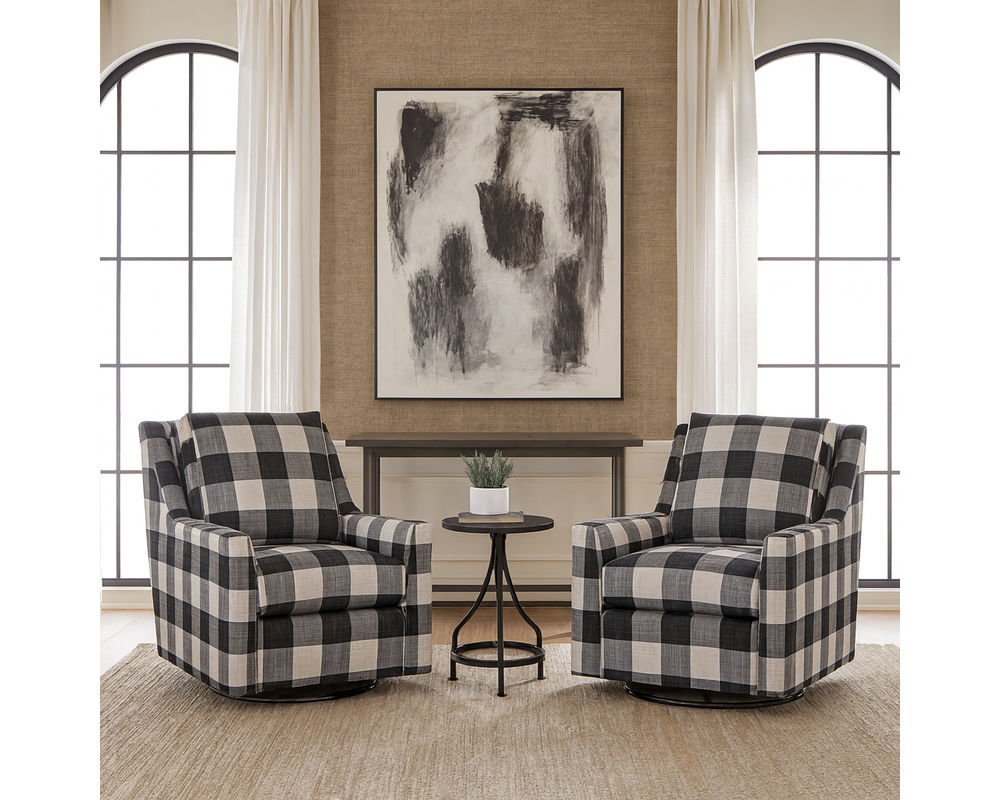 The Columbus Chair brings tailored comfort and timeless transitional style to your living space. Designed with gently sloped arms, tapered legs, and a clean silhouette, it’s a versatile accent that blends seamlessly into both casual and modern interiors. Plush polyester fiber-fill back support pairs with a Comfort Plus high-resilience foam seat cushion, offering durability, support, and lasting comfort. Available as a stationary chair, swivel chair, or swivel glider chair, the Columbus collection gives you the flexibility to design seating that fits your lifestyle.