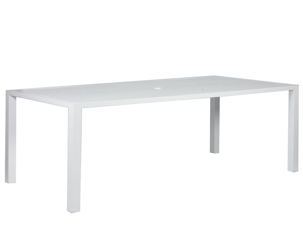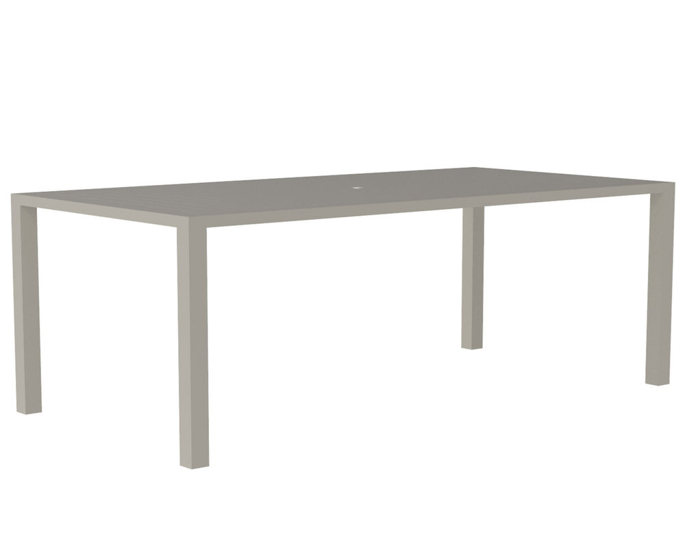 FEATURES: Fully-welded and assembled. 360 degree welds for maximum strength and longevity. Solid billet aluminum top milled in a modern, geometric pattern. Seats 4. 2" Umbrella hole.