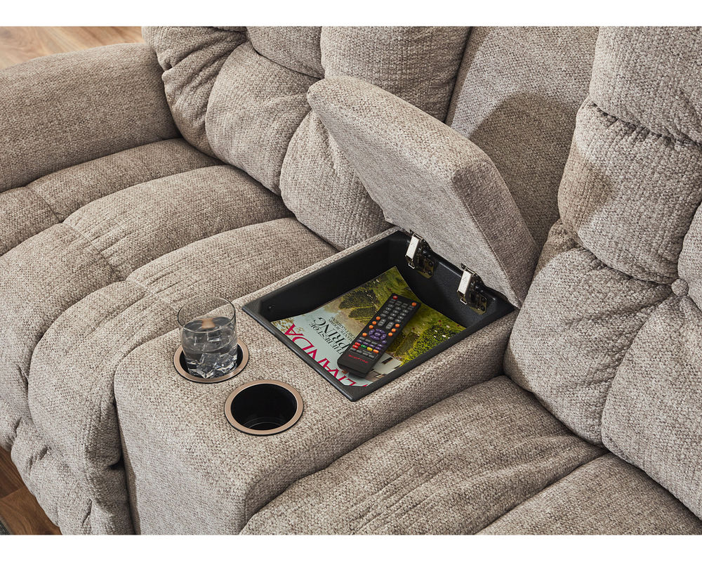 Our Corey L715 Reclining Console Loveseat is the perfect way to relax and unwind after a long day. Built with immense amounts of pillow fibers that fill the backs and chaise lounge, it supports every inch of your body and offers a firmer arm for scrolling and reading. You can choose from a manual outside reclining handle, or upgrade to power with a stylish two-button switch that includes a USB port. If you're looking for ultimate luxury, opt for the Power Tilt Headrest for adjustable head and neck support, plus our exclusive Comfort Dial with a USB port. The loveseat also features a Space Saver feature that allows for close-to-the-wall placement. For a comfortable and relaxing experience, the Corey L715 Reclining Console Loveseat is the perfect choice.