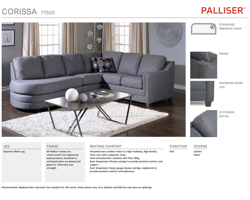 • All Palliser cushions are crafted to rigorous quality standards for superior comfort, support and endurance. High-density, high-resiliency seat foam is used to ensure years of quality seating.