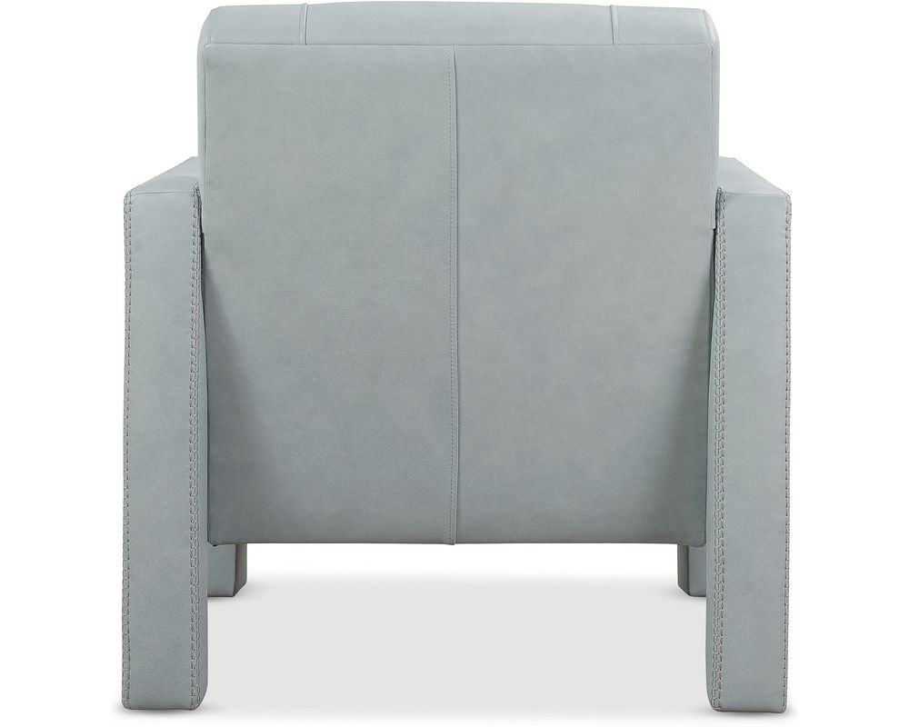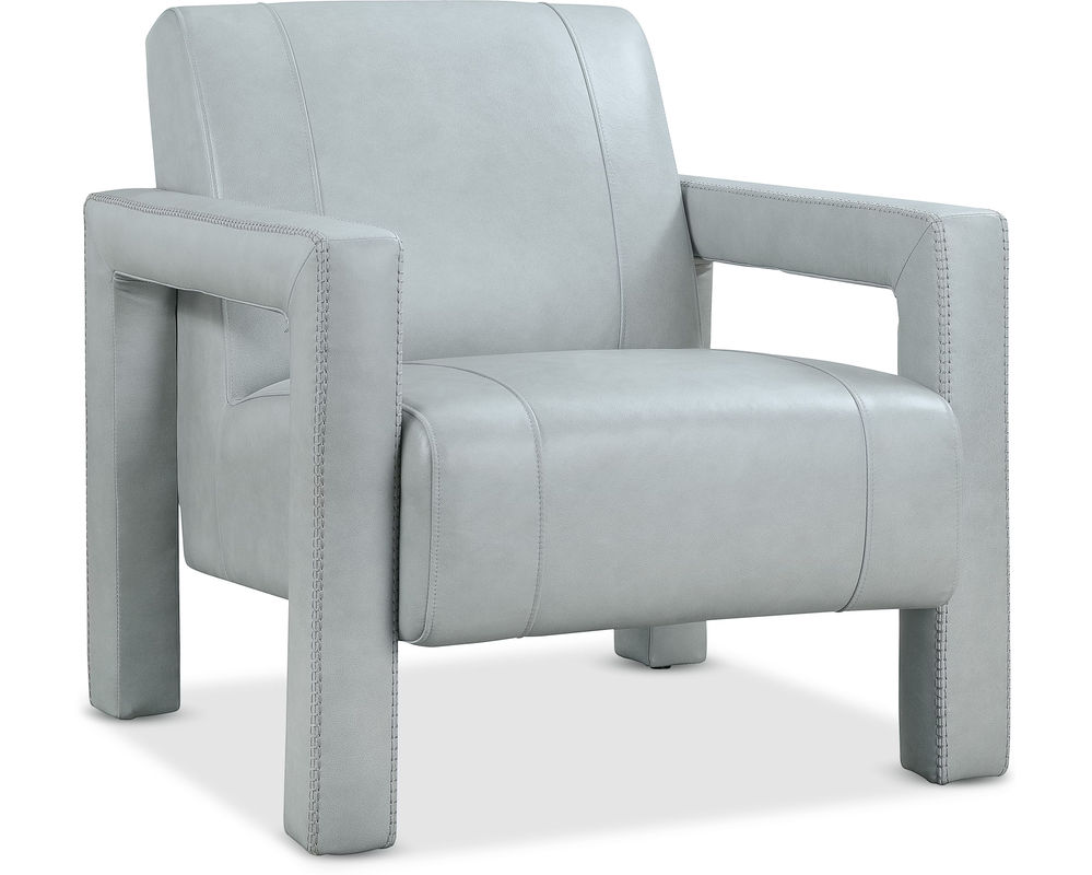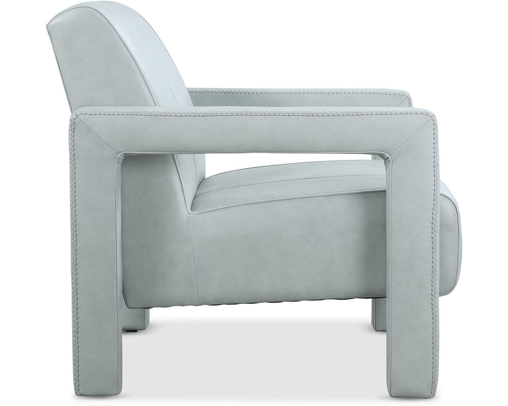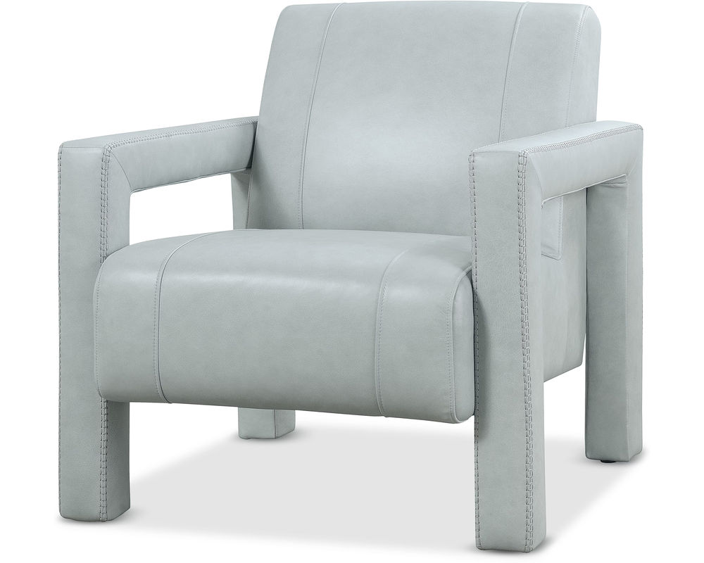 Covette Leather Accent Chair by Hooker Furniture Modern elegance meets bold design in the Covette Accent Chair. Wrapped in luxurious Amani Arctic Blue semi-aniline top-grain leather, this statement piece features a fully upholstered frame with open arms and distinctive ladder stitch detailing. Perfect for contemporary living rooms, offices, or lounges, the Covette Chair brings designer-level sophistication and exceptional comfort to any space.