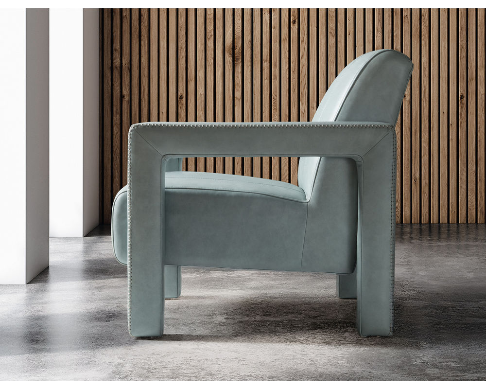Luxurious Upholstery: Covered in Amani Arctic Blue semi-aniline top-grain leather for a smooth, premium feel.