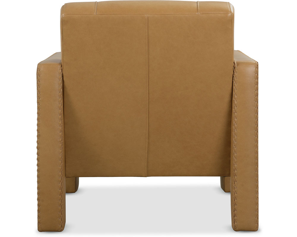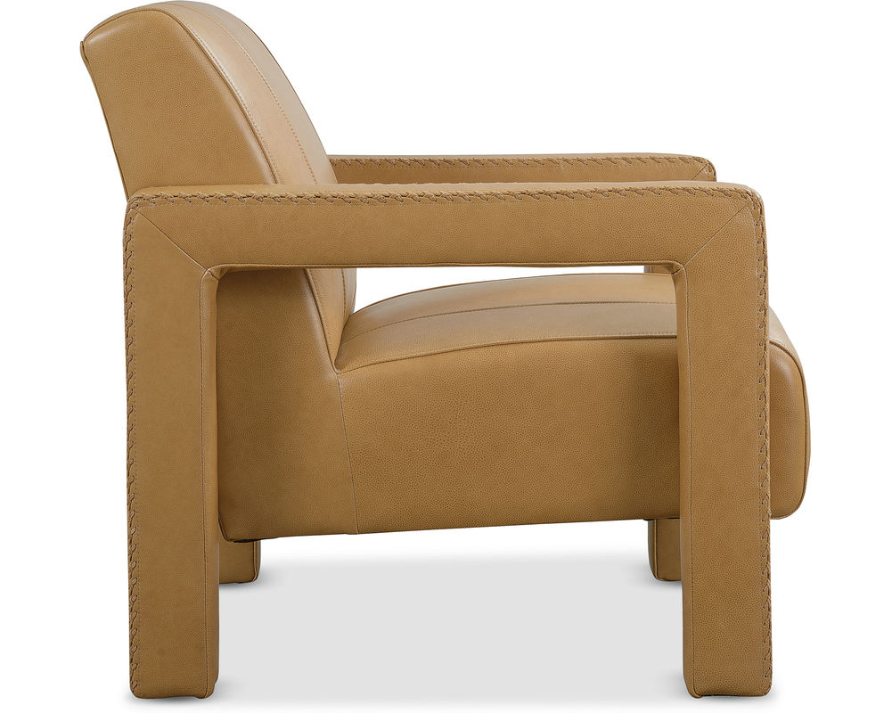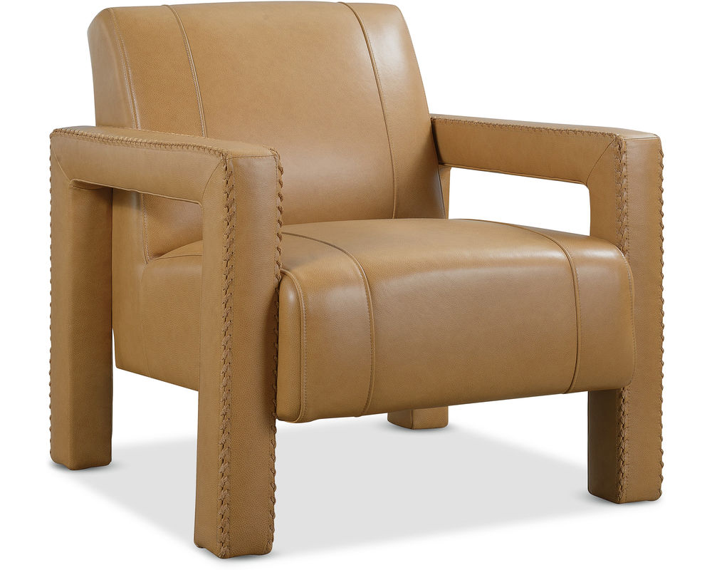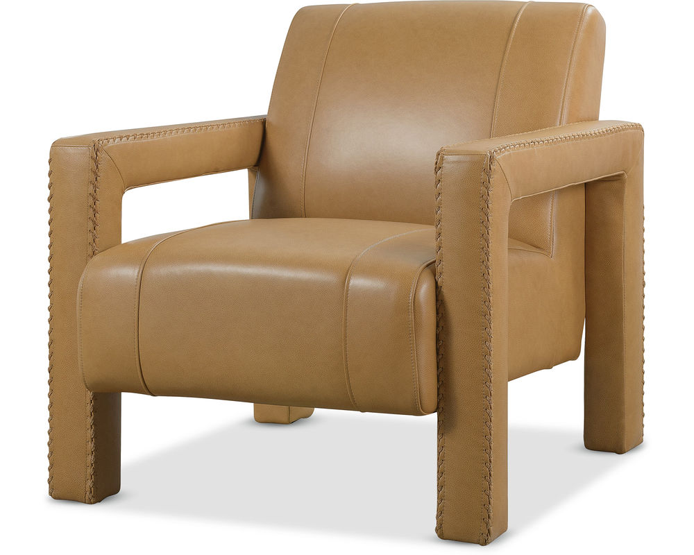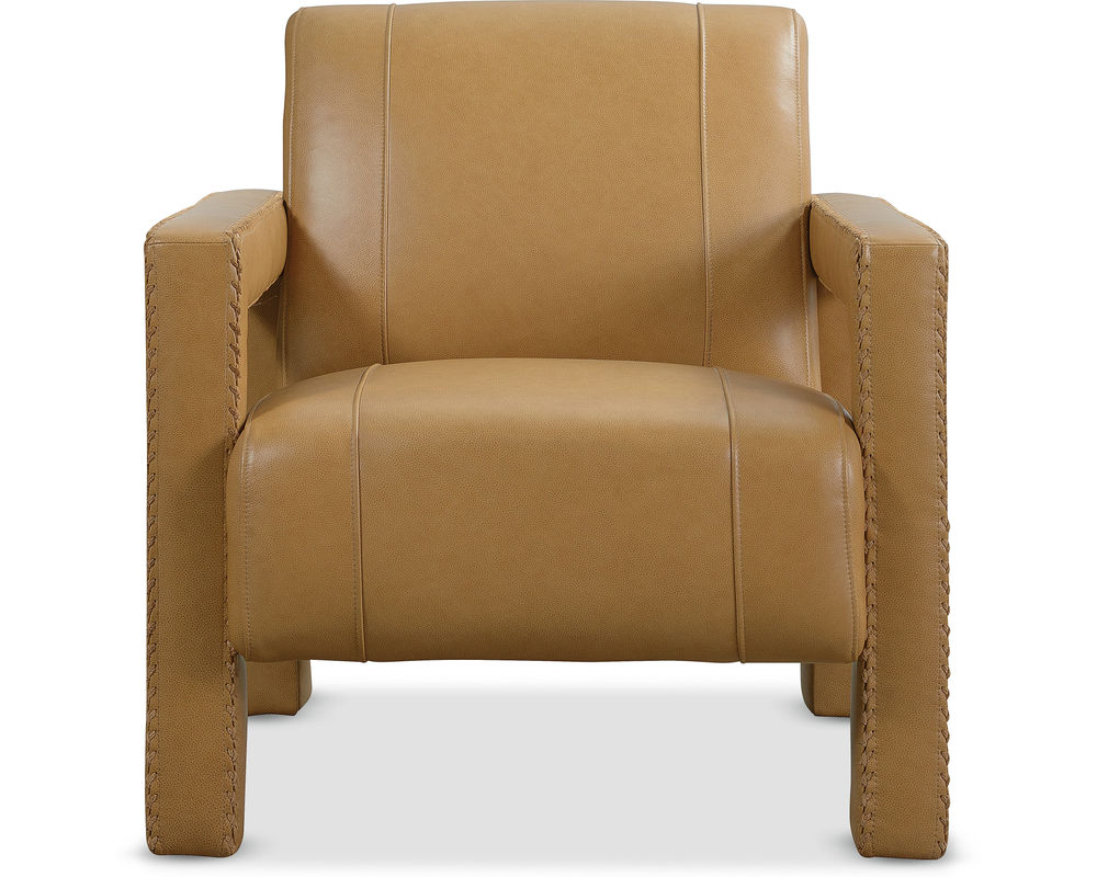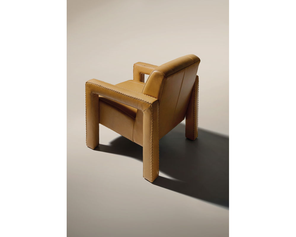 Covette Leather Accent Chair by Hooker Furniture Modern elegance meets bold design in the Covette Accent Chair. Wrapped in luxurious Amani Arctic Blue semi-aniline top-grain leather, this statement piece features a fully upholstered frame with open arms and distinctive ladder stitch detailing. Perfect for contemporary living rooms, offices, or lounges, the Covette Chair brings designer-level sophistication and exceptional comfort to any space.