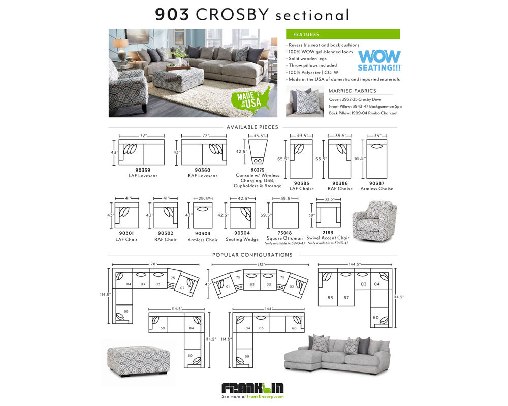 Whether you're entertaining guests or relaxing with your family, the Crosby 903 Sectional offers the perfect combination of style, functionality, and comfort. Upgrade your living space today with this must-have piece.