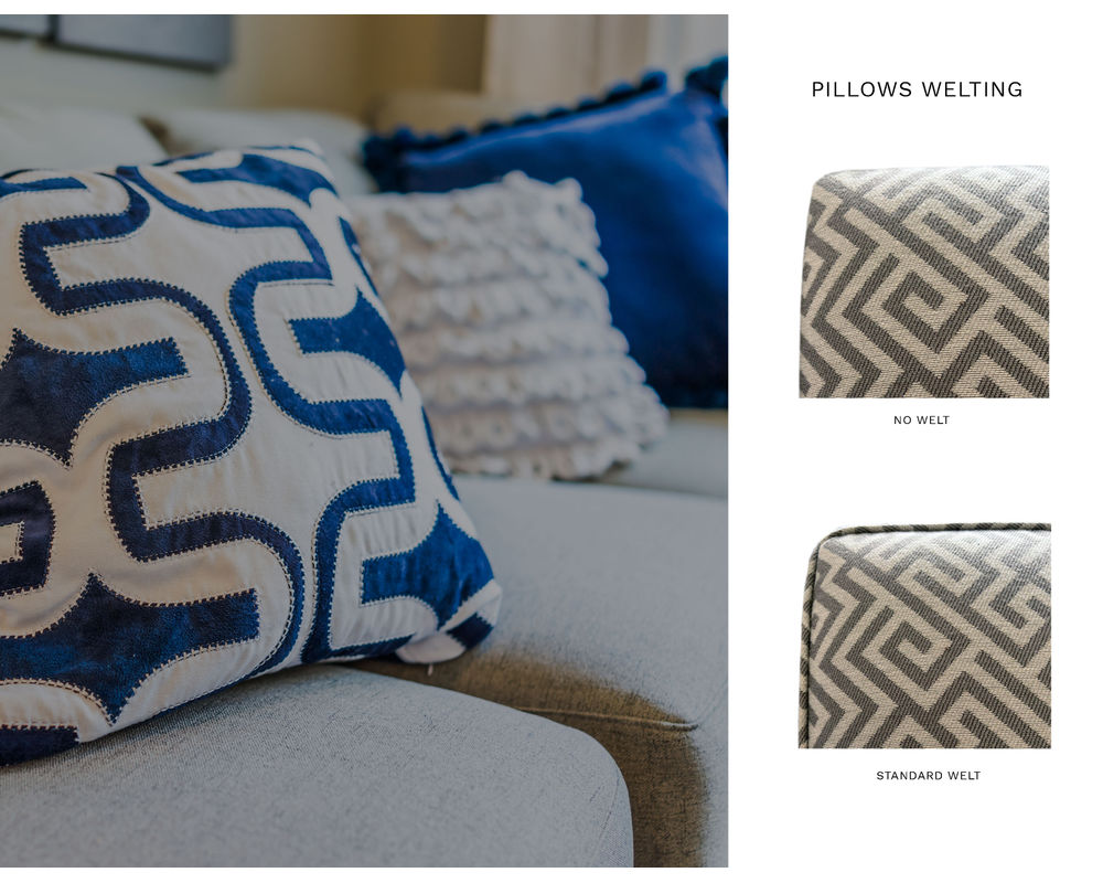 Nothing creates the room better than a set of decorative pillows. Sofas and Sectionals features four pillow sizes in over 86 different decorative fabrics. Create an extra soft pillow by selecting the down blend pillow option. Add the pillow welt option to add just that extra decorating touch. Pillows ship in approximately 2 to 4 weeks.