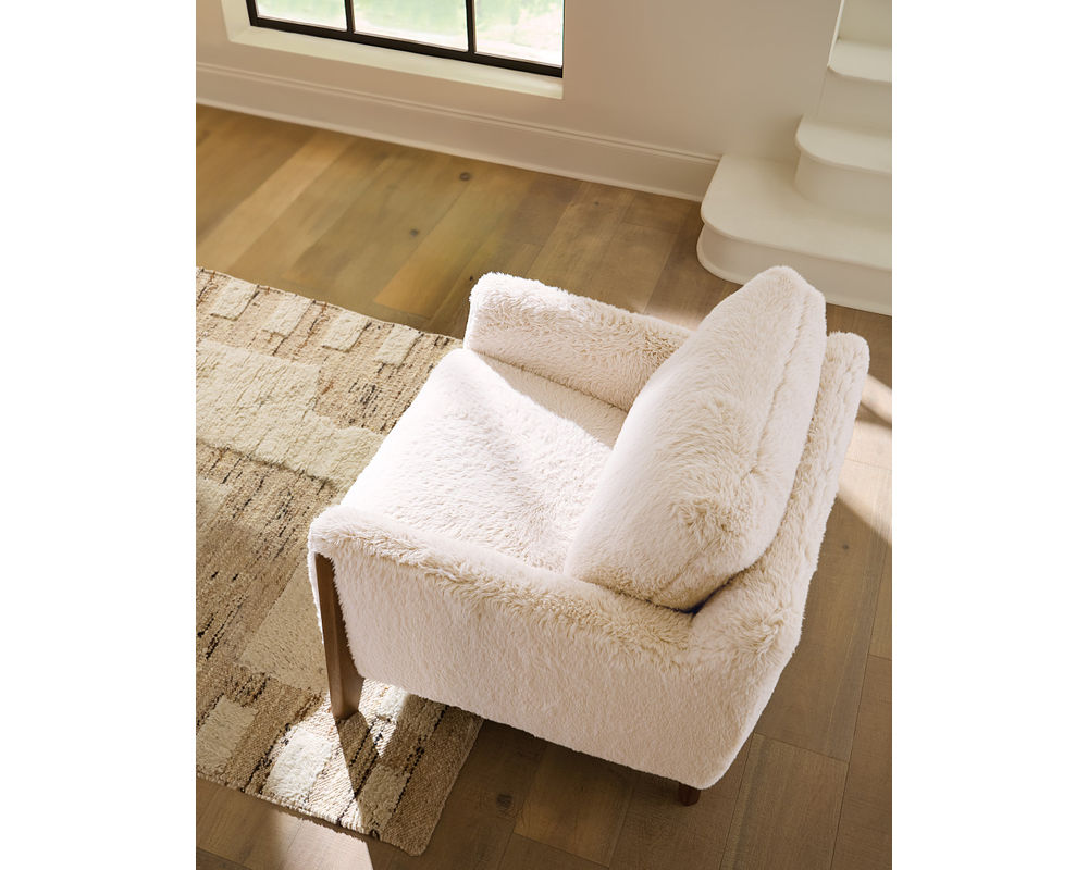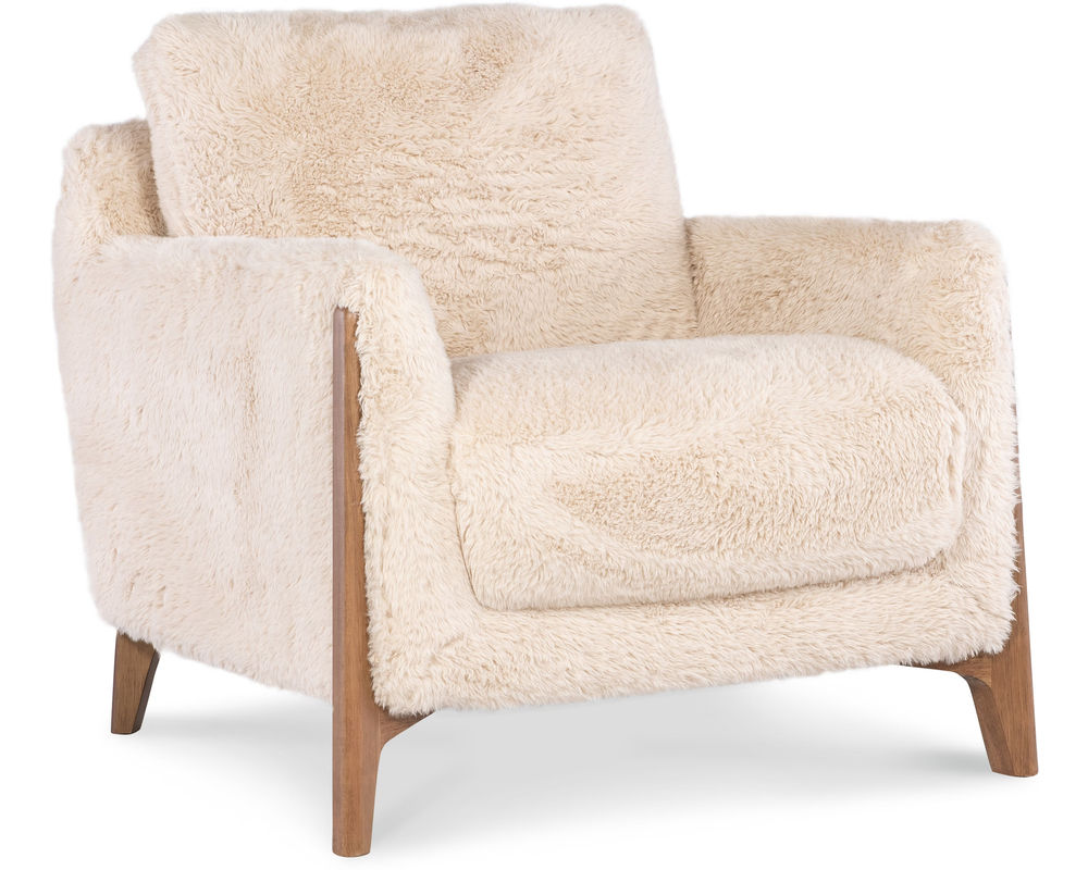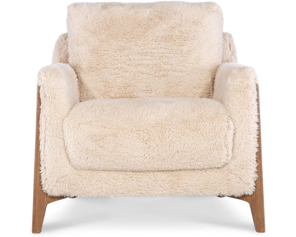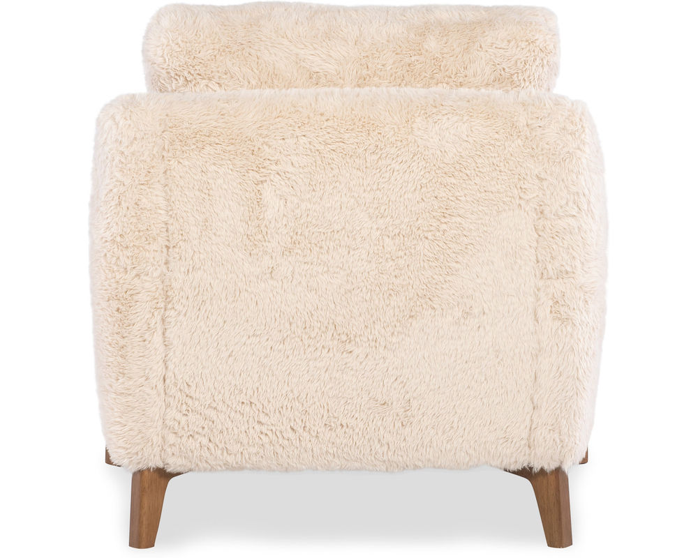 Cynthia Accent Chair Add a playful twist of texture and comfort to your space with the Cynthia Accent Chair by Hooker Furniture. Wrapped in soft, cozy “Yakety Yak Sand” faux fur fabric and crafted with clean lines and modern wood legs, this chair makes a bold style statement while offering a snug and inviting seat. Whether in a bedroom, reading nook, or living room, the Cynthia is a fun yet sophisticated addition to any contemporary home.