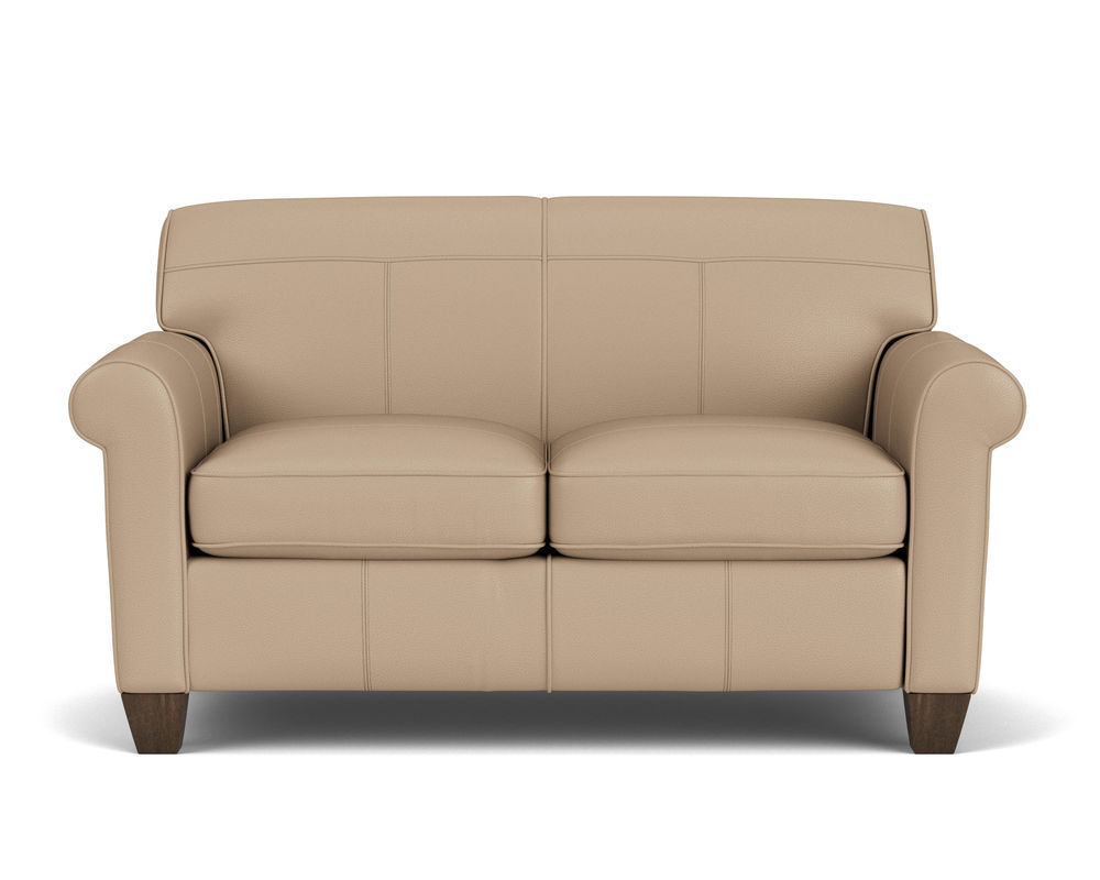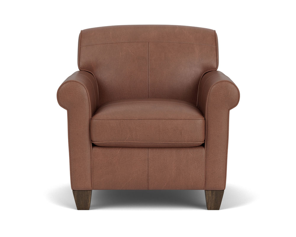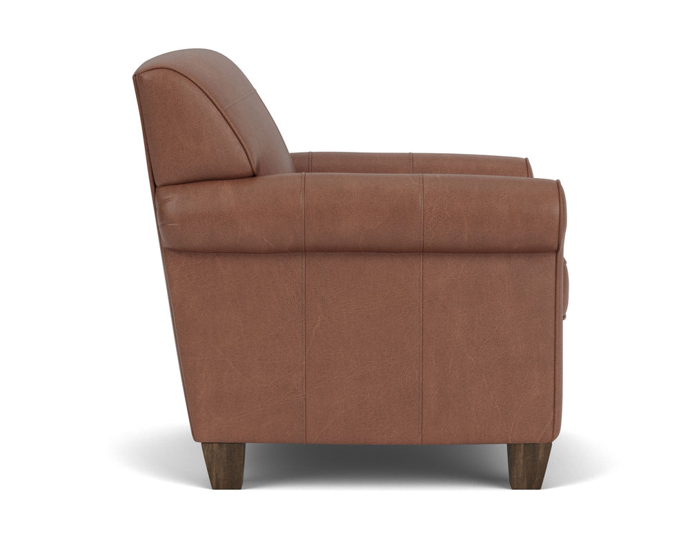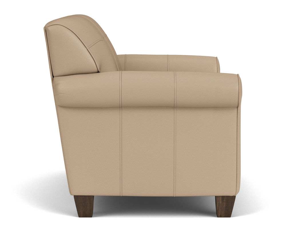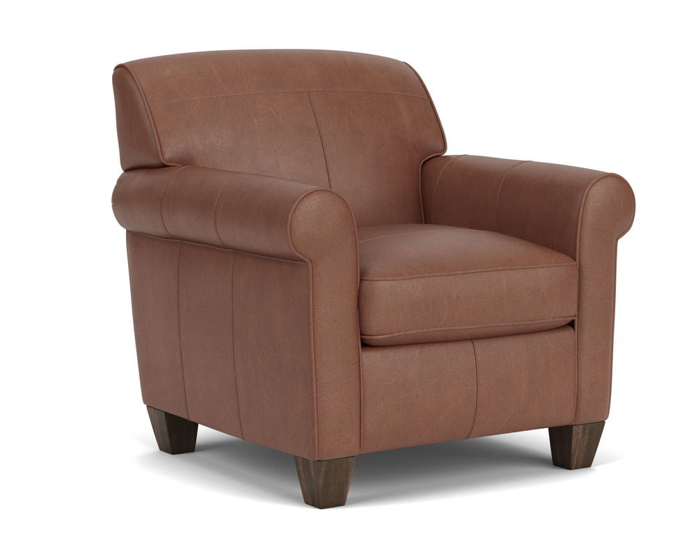 Dana is current and stylish, yet simple enough to withstand the test of time. This modestly scaled style is a great option for small spaces. With a tightly padded back, tailored roll arms and tall tapered feet, Dana fits classic touches into a streamlined design that lends openness to any space. Flexsteel only uses the finest leathers guaranteed to last. Over 40 leather colors to select from.