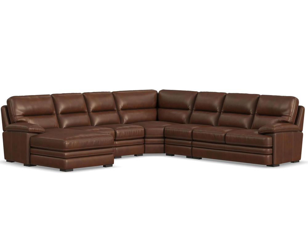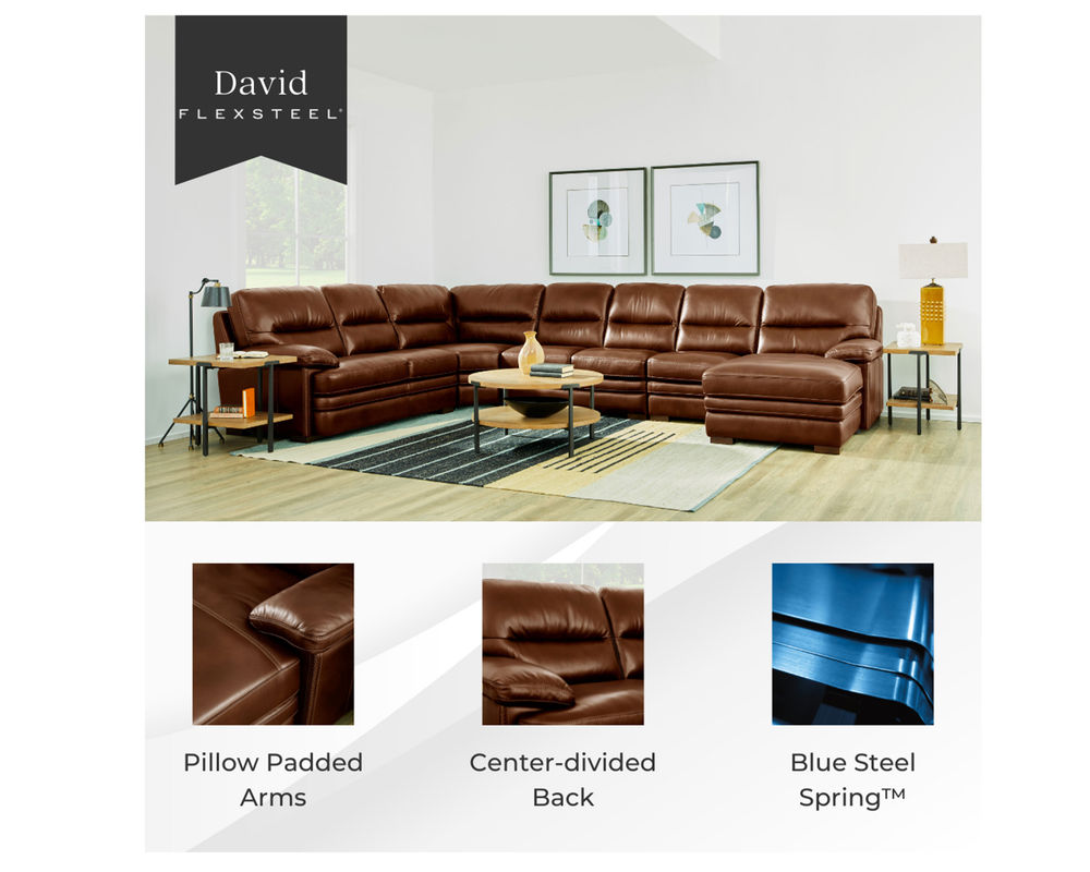 Introducing the David 1825 Leather Sectional, the perfect combination of luxury, comfort, and value. This sofa is designed for those who want to experience the ultimate level of comfort. With its generous dimensions, you can quickly sink into the wide seat cushions, divided back, and lofty pillow-padded arms for a truly indulgent experience.