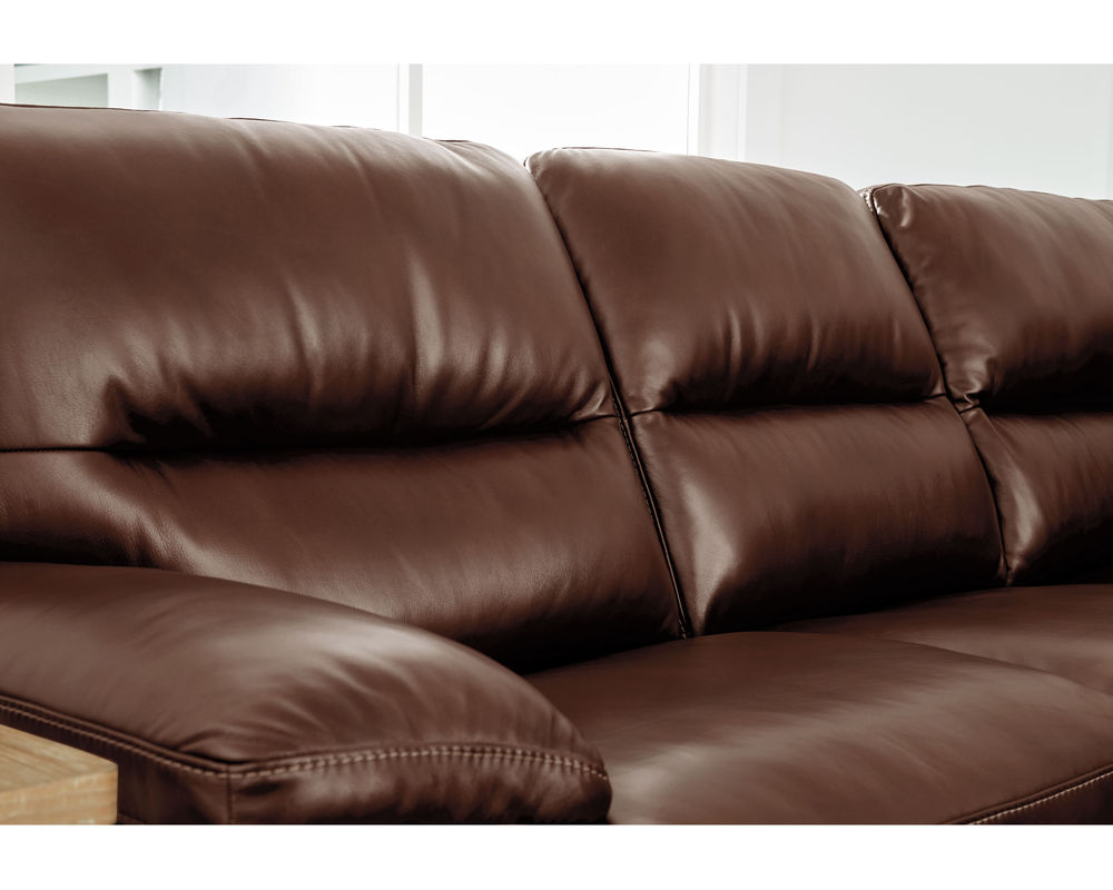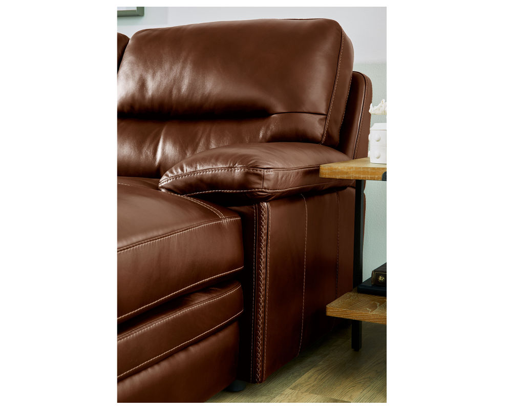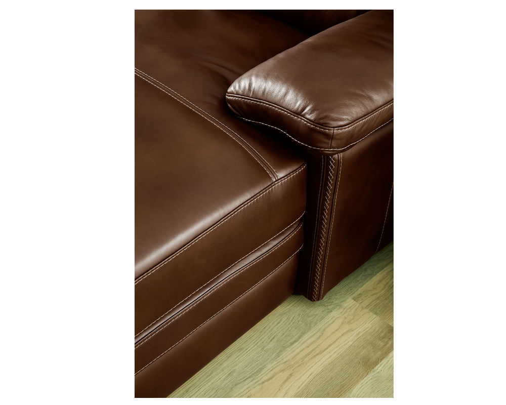 • Fully upholstered in a classic top-grain protected leather that delivers a consistent look over time and durability for use by active families