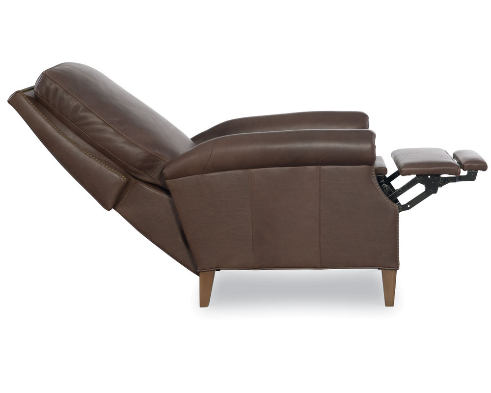 One of the standout features of this recliner is its high leg design, which adds a touch of elegance to any room. The rolled arms and French seamed detailing give the David Recliner a classic and sophisticated look, while the nail head trim accents add a subtle touch of glamour.