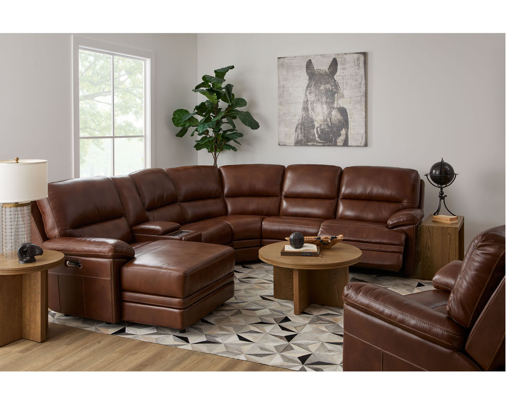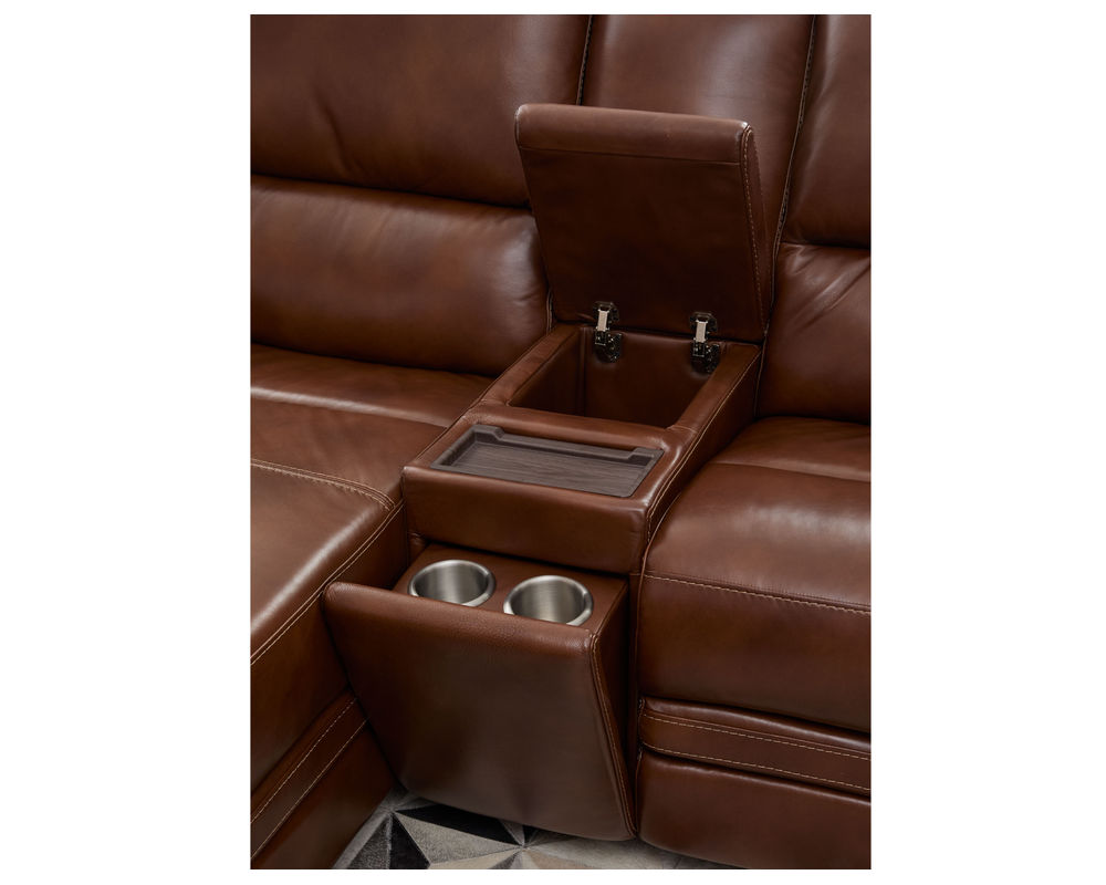 One of the standout features of the David Reclining collection is its grand scale and sophisticated silhouette. The unique layered front rail and striking stitch details add a touch of elegance to any room. Crafted with high-quality materials, this Sectional is upholstered in a buttery-soft, protected top-grain leather. This leather is not only luxurious to the touch but also durable and easy to maintain, ensuring that your sectional will remain in top condition for years to come.