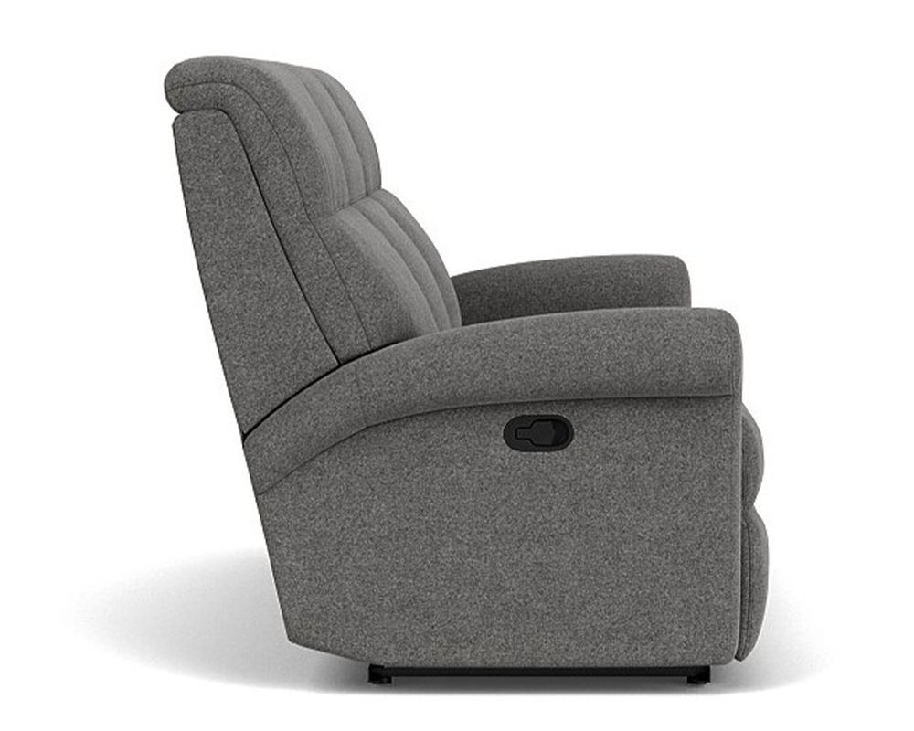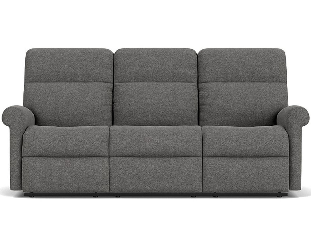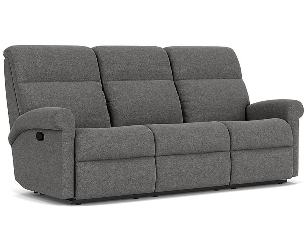 The Flexsteel Davis Reclining Sofa perfectly blends simple style and comfort. It's rolled arm that slopes back for a sharp look highlights its clean, tailored appeal. The slightly contoured seating cradles you while the divided back cushion and fully padded footrest offer perfect support. With its smooth reclining mechanism, you can easily switch from an upright to a fully reclined position with just a few simple movements. Whether you're relaxing after a long day or entertaining guests, the Flexsteel Davis Reclining Sofa will provide the perfect balance of comfort and style. A wide selection of fabrics and power recliner options are available.